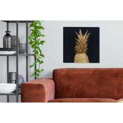 MuchoWow Tableau Sur Toile Ananas – Or – Peinture Decoration Murale 50×50 Cm