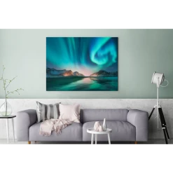 MuchoWow Tableau Sur Toile Aurores Boréales – Neige – Réflexion – Norvège De…