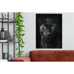 MuchoWow Tableau Sur Toile Panthère – Noir – Jaune Decoration Murale 60×80 Cm