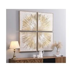 Vente-unique Toile Imprimée Quadriptyque Encadrée – 120 X 120 Cm – Châssis En Bo…