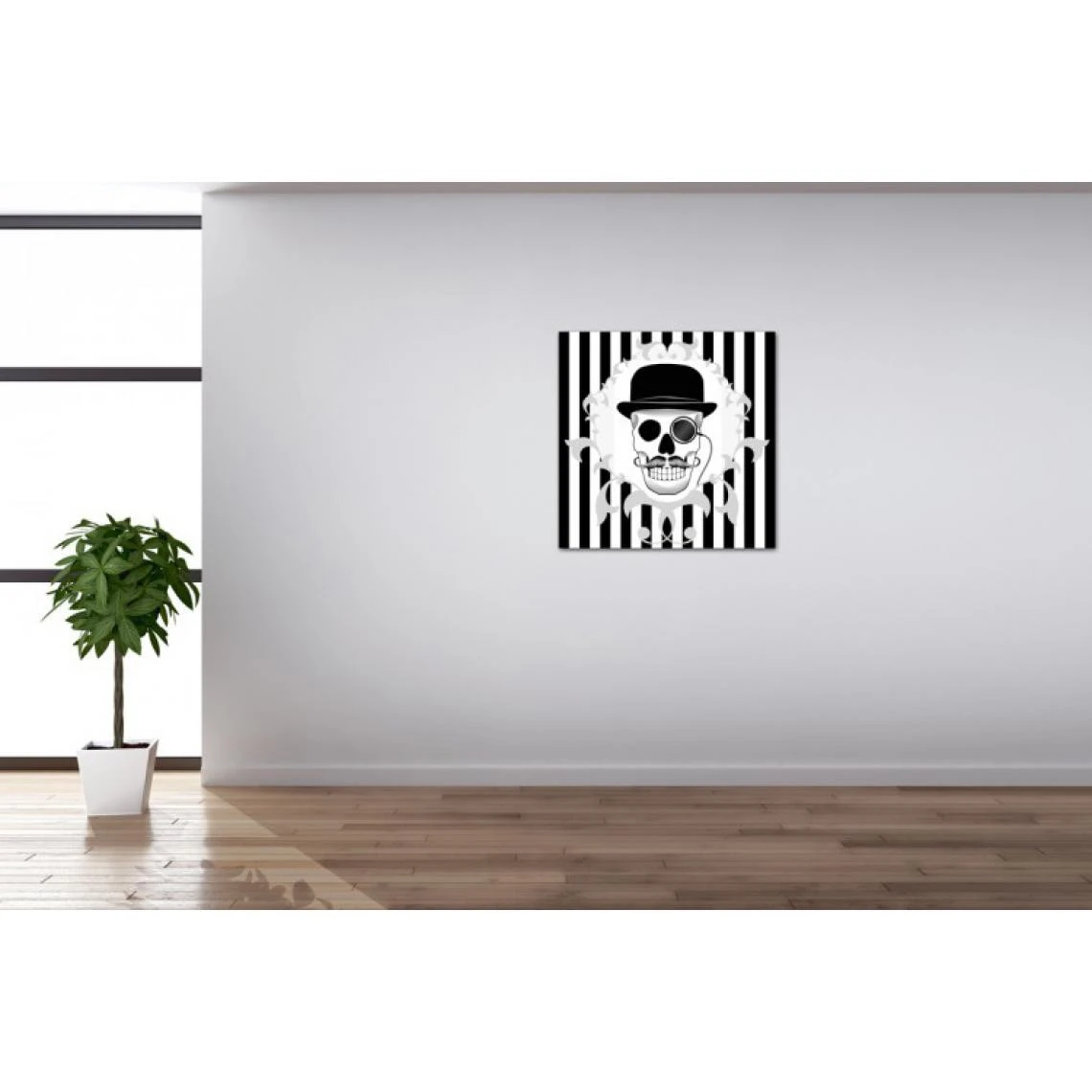 Points forts DECLIKTABLEAU Tableau Baroque Rayures Blanches et Noires Tête de Mort Gentleman 80X80 cm
