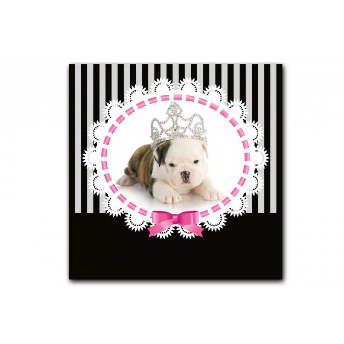 Apportez une touche glamour à votre décoration avec ce Tableau enfant Chien princesse baroque 60×60 cm. Petit chien avec une couronne de princesse, il plaira à vos petites filles.