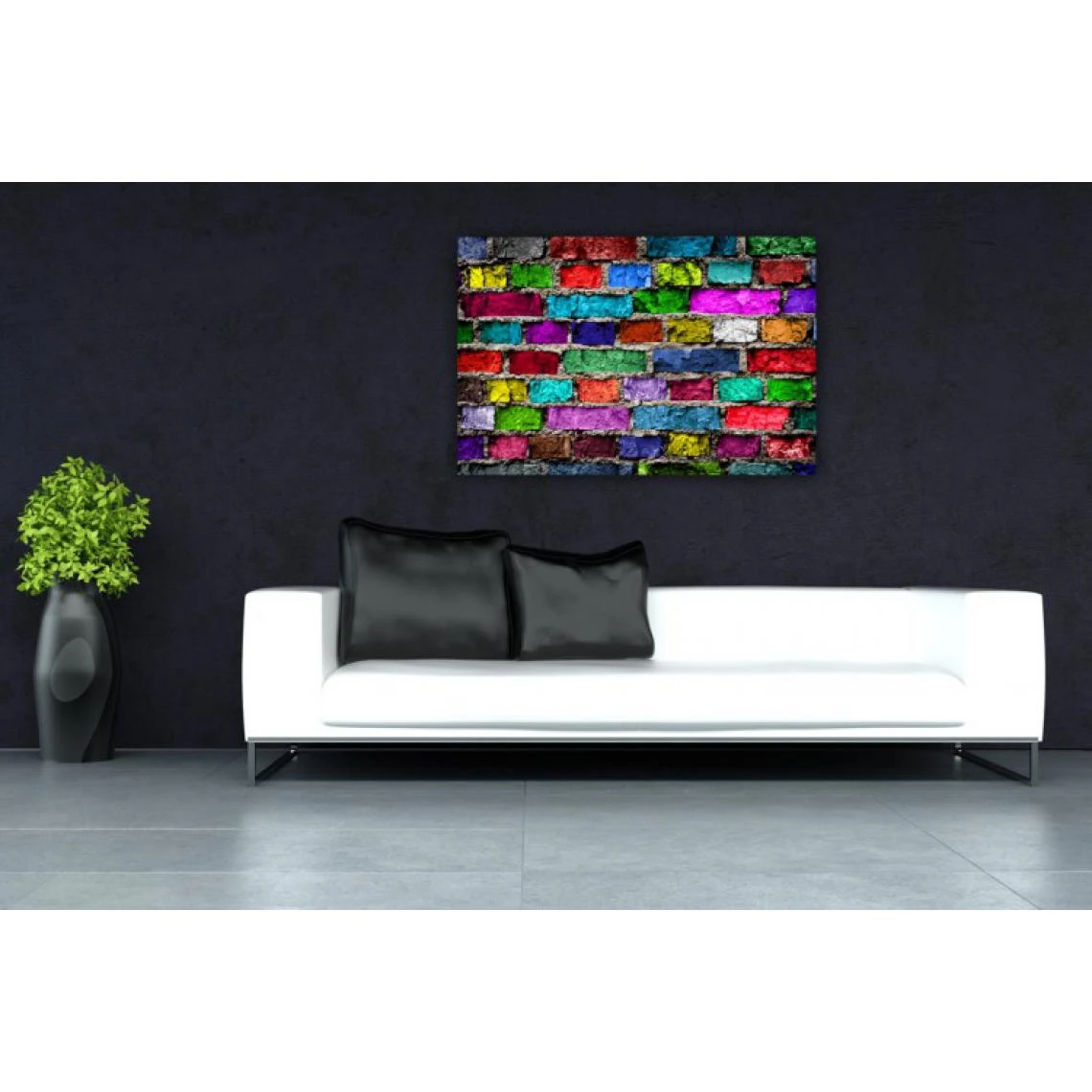 Apportez une touche peps à votre déco avec ce Tableau pop art Mur de briques multicouleur 80×55 cm. Ces briques sont peintes de différentes couleurs pour un effet original et surprenant !