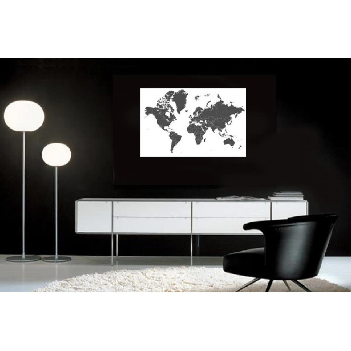 Ce tableau est un très beau planisphère gris sur fond blanc. Le double coloris apporte une légère brillance à l’ensemble qui rend le tableau très lumineux. Idéal dans un bureau ou un salon.