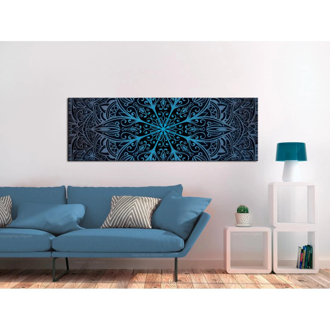 Points forts Decoshop26 Tableau sur toile décoration murale image imprimée cadre en bois à suspendre Plumes (1 partie) Bleu Étroit 150×50 cm 11_0009264