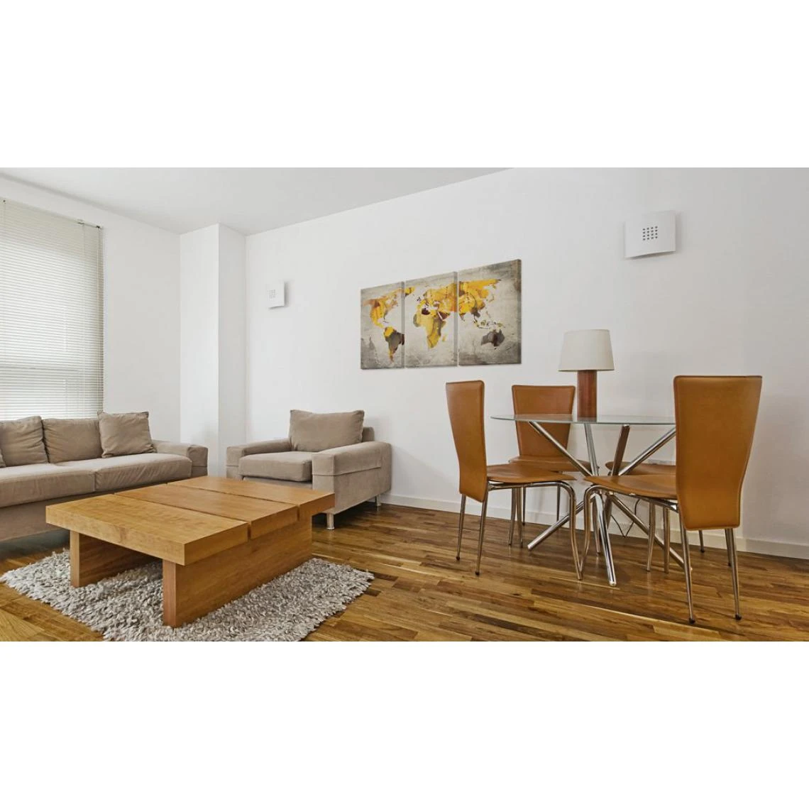 Points forts Decoshop26 Tableau sur toile en 3 panneaux décoration murale image imprimée cadre en bois à suspendre Continents jaunes 120×60 cm 11_0003786