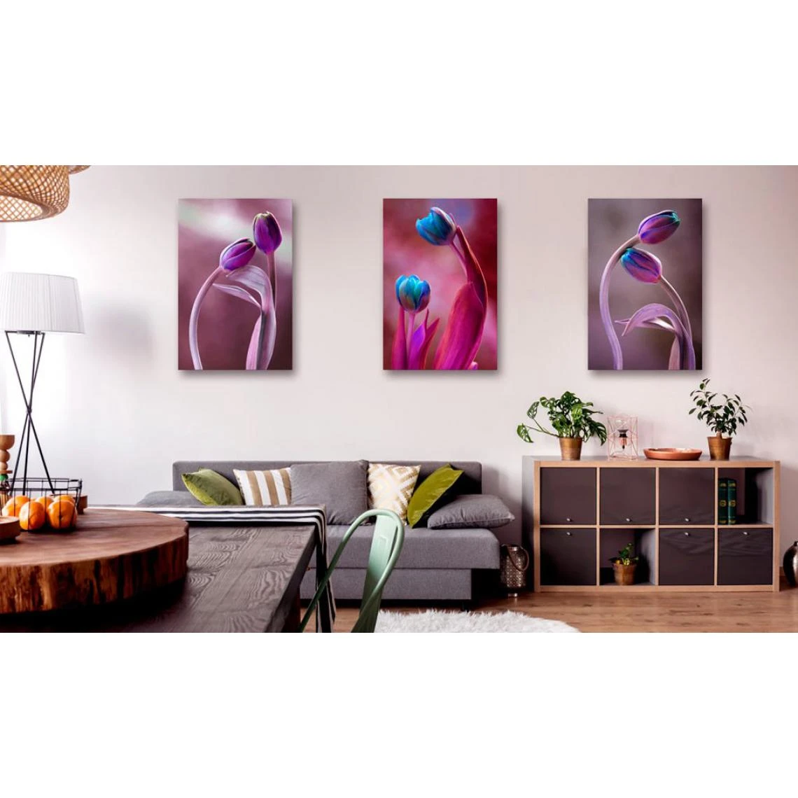 Points forts Decoshop26 Tableau sur toile en 3 panneaux décoration murale image imprimée cadre en bois à suspendre Tulipes amoureux 120×60 cm 11_0005778