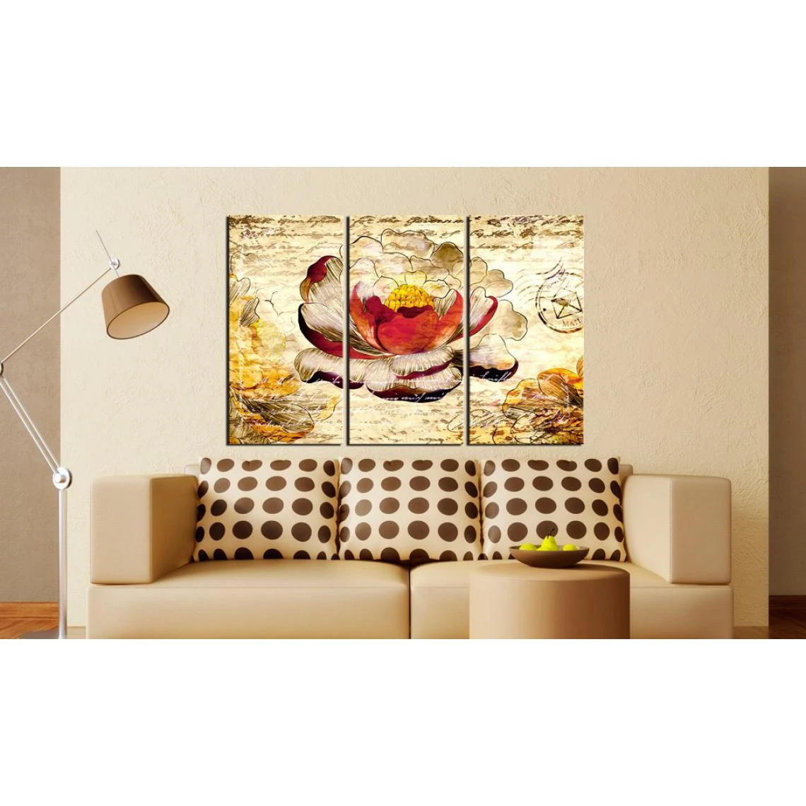 Points forts Decoshop26 Tableau sur toile en 3 panneaux décoration murale image imprimée cadre en bois à suspendre Fleurs en rétro 60×40 cm 11_0004946
