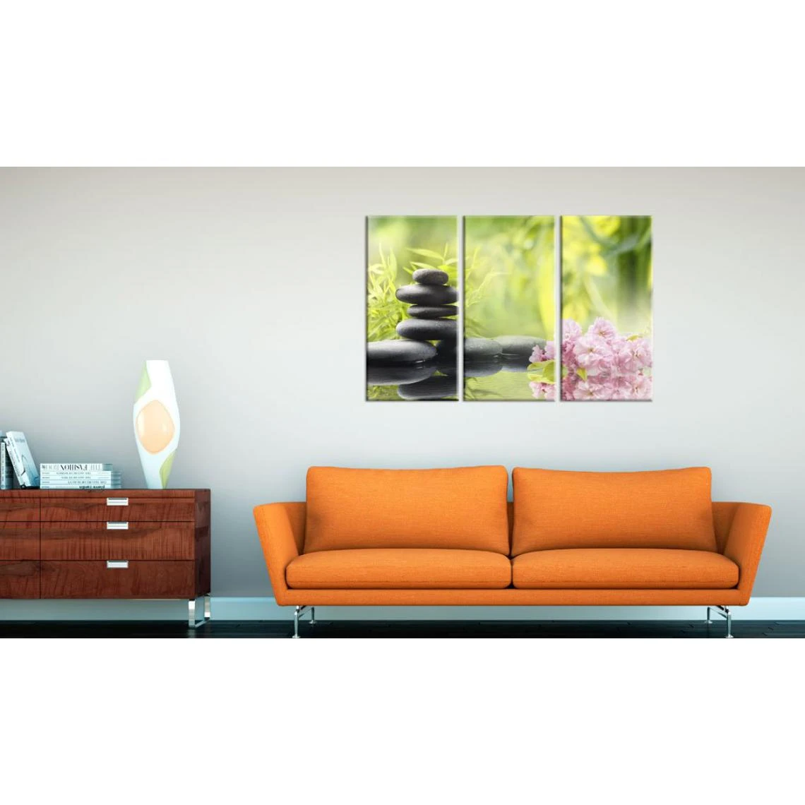 Points forts Decoshop26 Tableau sur toile en 3 panneaux décoration murale image imprimée cadre en bois à suspendre composition zen 120×80 cm 11_0008971