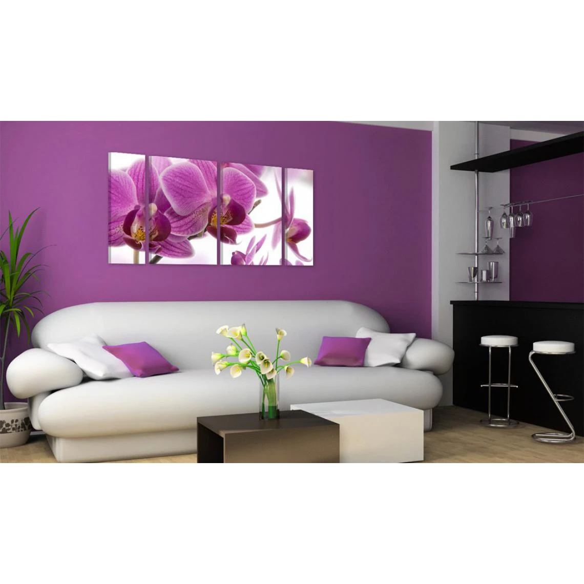 Points forts Decoshop26 Tableau sur toile en 4 panneaux décoration murale image imprimée cadre en bois à suspendre Merveilleuse orchidée 120×60 cm 11_0005518