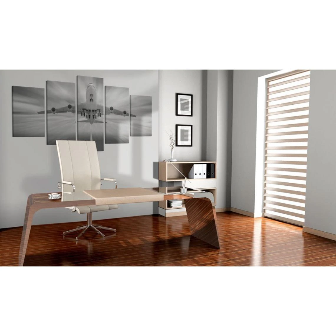 Points forts Decoshop26 Tableau sur toile en 5 panneaux décoration murale image imprimée cadre en bois à suspendre Avion 100×50 cm 11_0001962