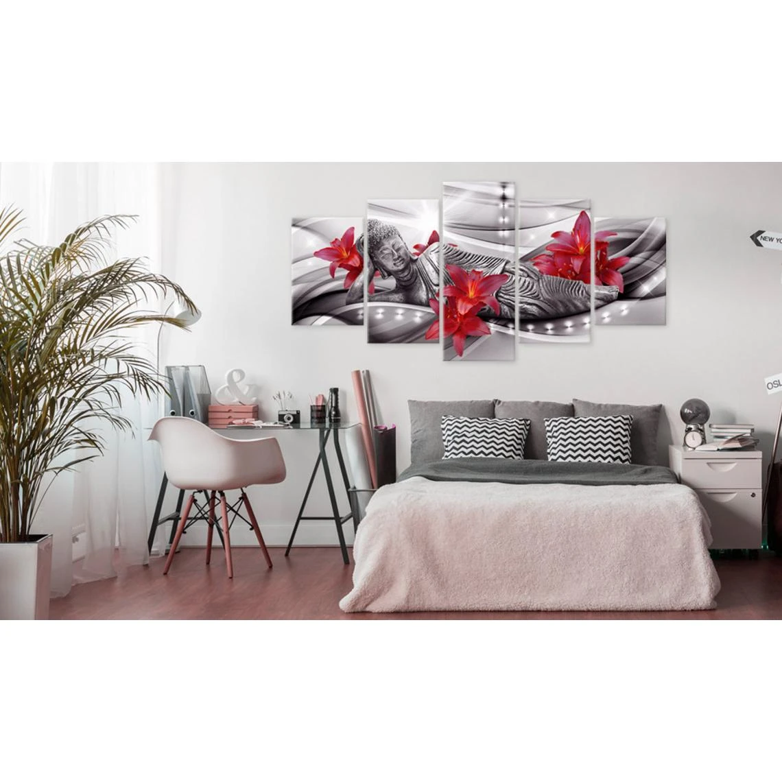Points forts Decoshop26 Tableau sur toile en 5 panneaux décoration murale image imprimée cadre en bois à suspendre Bouddha relaxant 200×100 cm 11_0009016