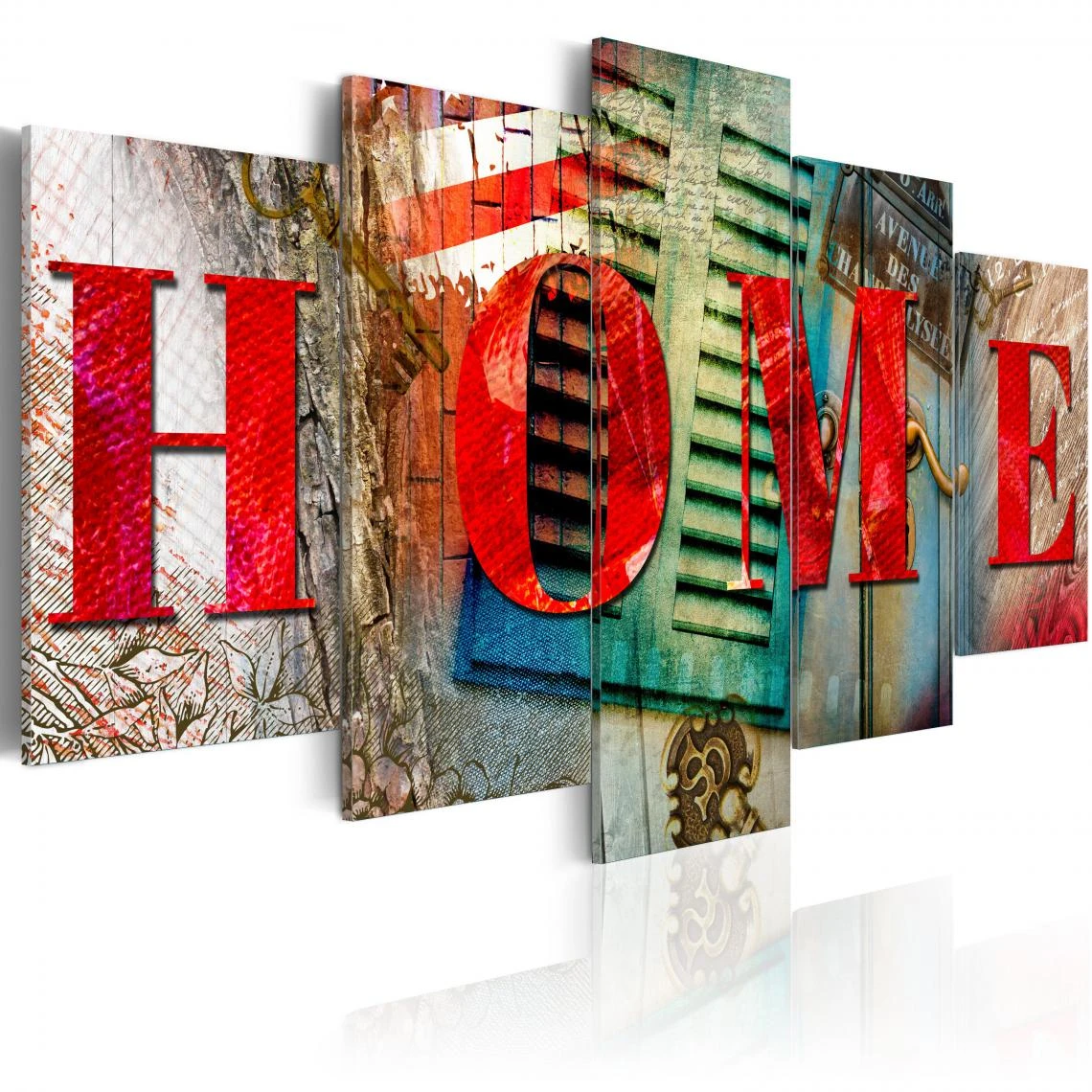 Tableau toile de décoration murale en 5 parties sur châssis en bois Motif Home Impression de la plus haute qualité Le tableau est tendu sur un châssis Les peintures utilisées sont inodores et non toxiques Clous et crochets inclus à fixer sur le tableau Dimensions: 200x100cm Dimensions par panneaux: 40×60 40×80 40×100 40×80 40x60cm Nous ne faisons pas d’expédition sur les îles (Corse inclue), Monaco et les DOM/TOM Décoshop26 DEC110075