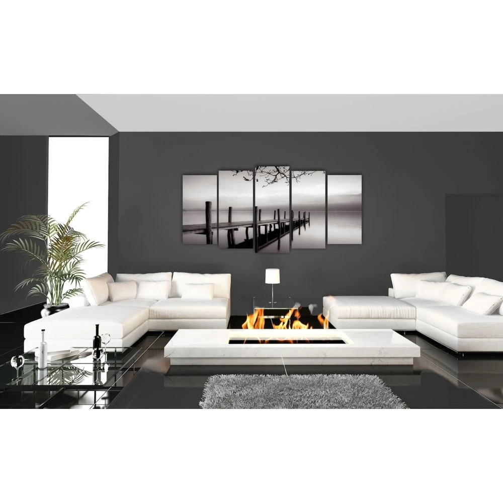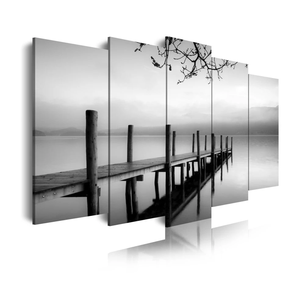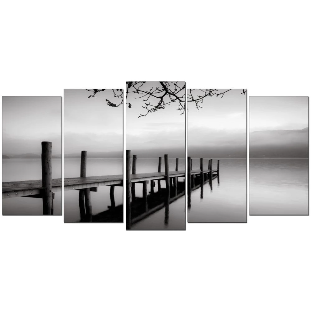 Points forts Dekoarte Dekoarte 150 – Tableau moderne sur toile monté sur cadre en bois 5 pièces XXL, nature embarcadère zen, 200x100cm