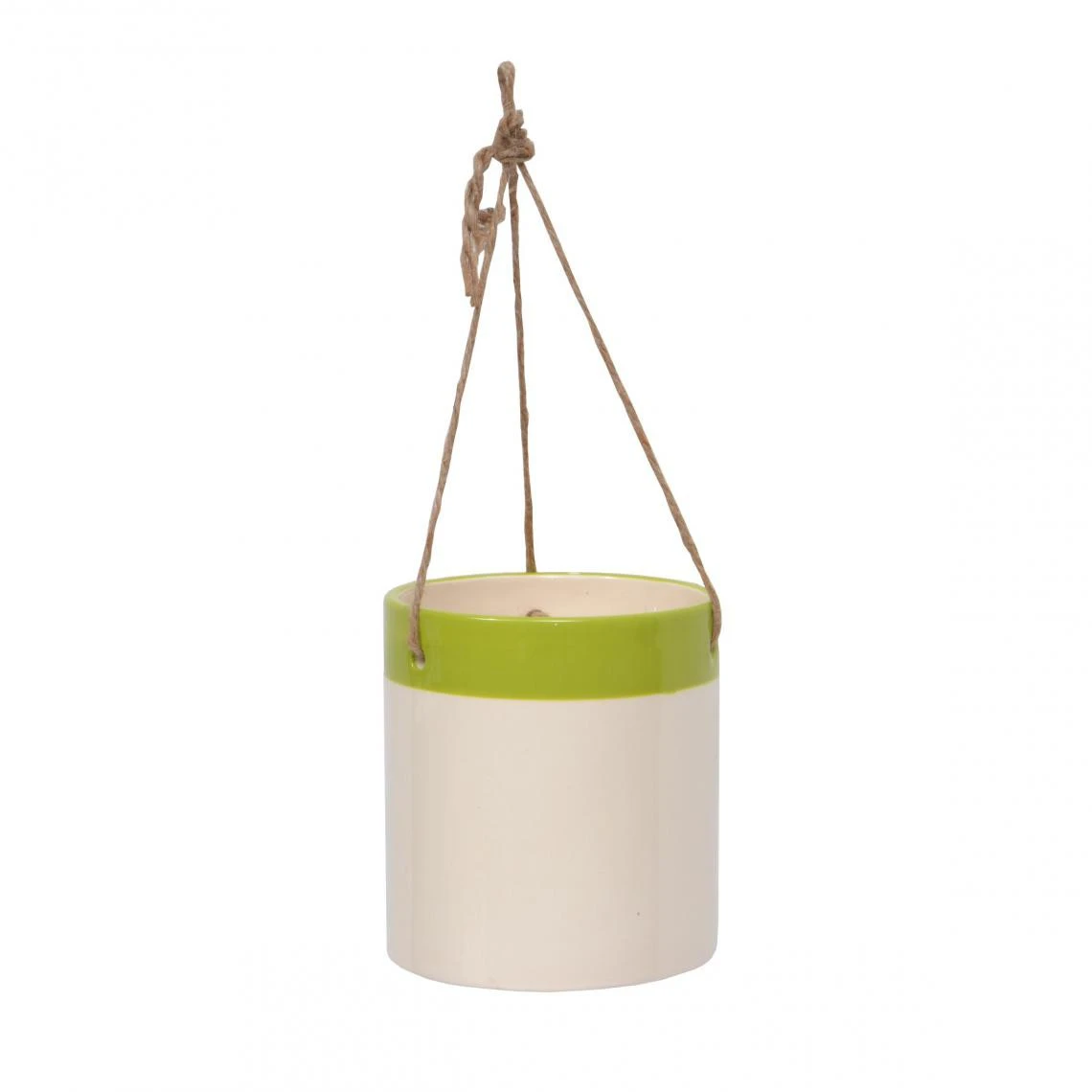 Avec ce Pot de Fleurs à Suspendre Bicolore Vert Blanc FLORA, votre intérieur prendra un nouveau souffle végétal. En effet, vous pourrez suspendre ce pot où bon vous semble, à condition d’y ajouter une jolie plante verte. Avec son cordage blanc, ce pot remplit tous les codes du bohême chic et naturel, très en vogue en ce moment.