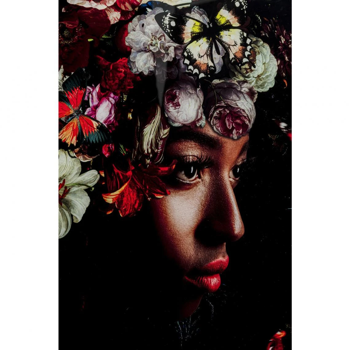 Points forts Karedesign Tableau en verre femme fleurs papillons 150x100cm Kare Design