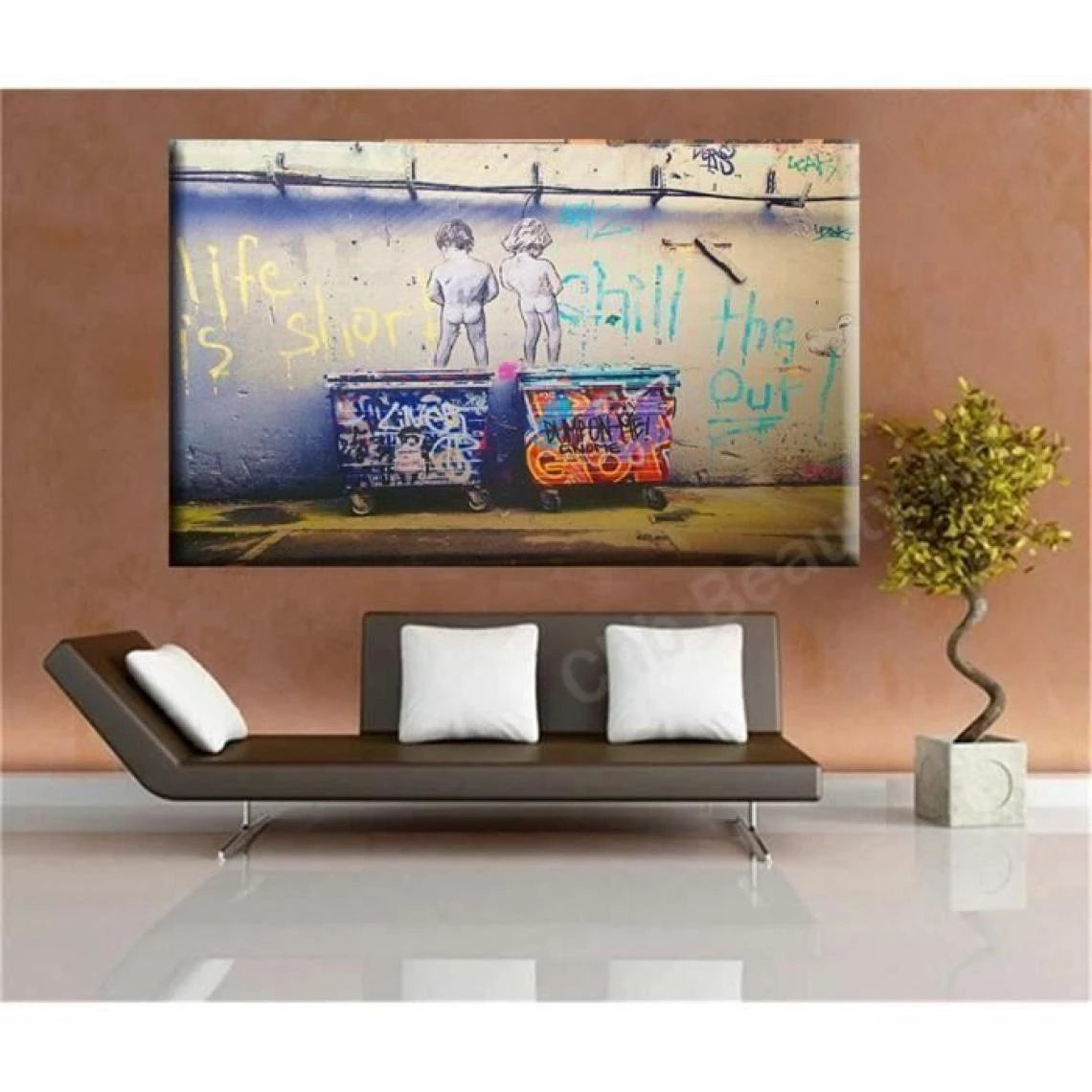 Points forts marque generique La vie est courte BANKSY toile peinture peintures murales pour salon mur art décoration photo poster et imprimer sans cadre