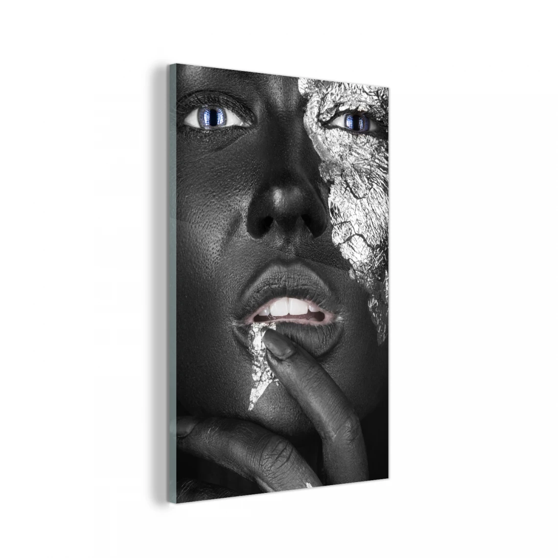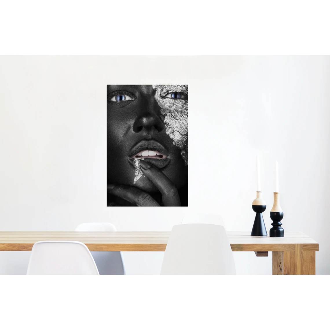 Points forts MuchoWow Impression sur verre Argent – Femelle – Noir Tableau decoration murale salon 60×90 cm Tableau sur verre acrylique