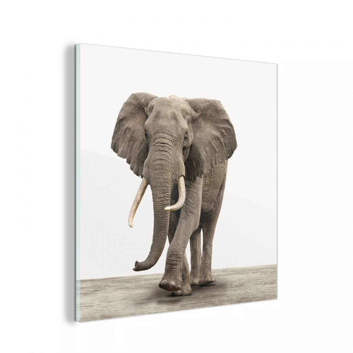 Points forts MuchoWow Impression sur verre Éléphant – Décoration murale – Salon – Chambre à coucher Tableau decoration murale salon 90×90 cm Tableau sur verre acrylique