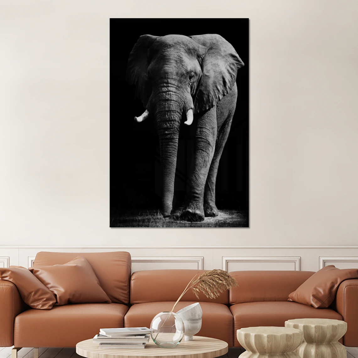 Points forts MuchoWow Impression sur verre Éléphant – Noir – Blanc – Animaux sauvages Tableau decoration murale salon 100×150 cm Tableau sur verre acrylique