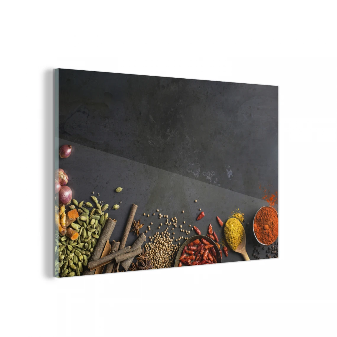 Points forts MuchoWow Impression sur verre Épices sur un fond noir Tableau decoration murale salon 90×60 cm Tableau sur verre acrylique