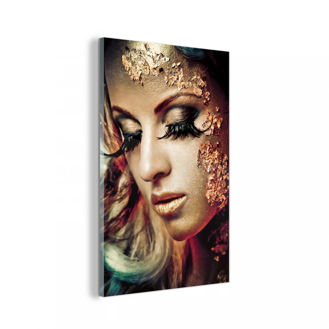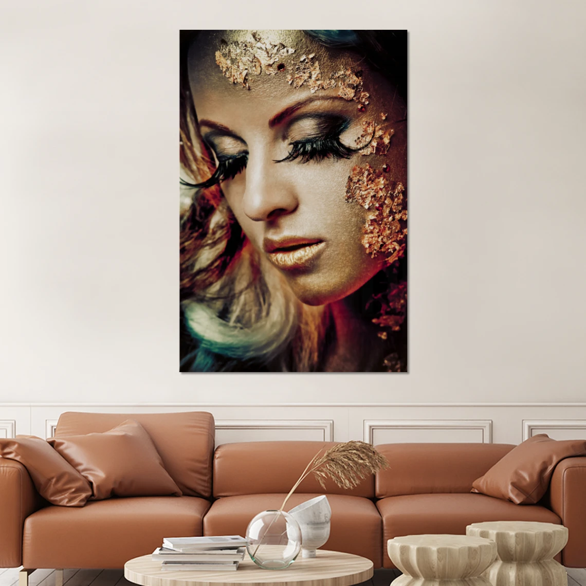Points forts MuchoWow Impression sur verre Feuille d’or – Femme – Or Tableau decoration murale salon 100×150 cm Tableau sur verre acrylique