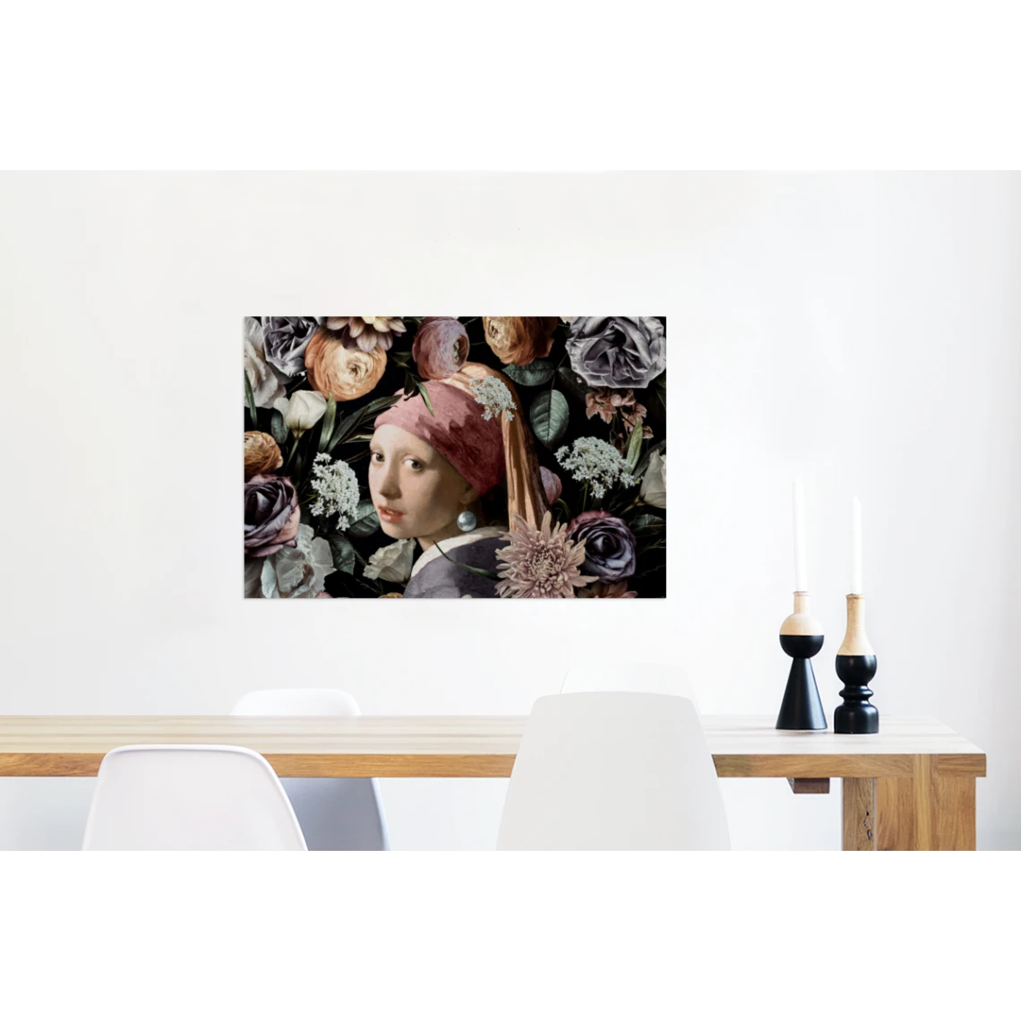 Points forts MuchoWow Impression sur verre Fille avec une boucle d’oreille en perle – Fleurs – Vermeer Tableau decoration murale salon 90×60 cm Tableau sur verre acrylique