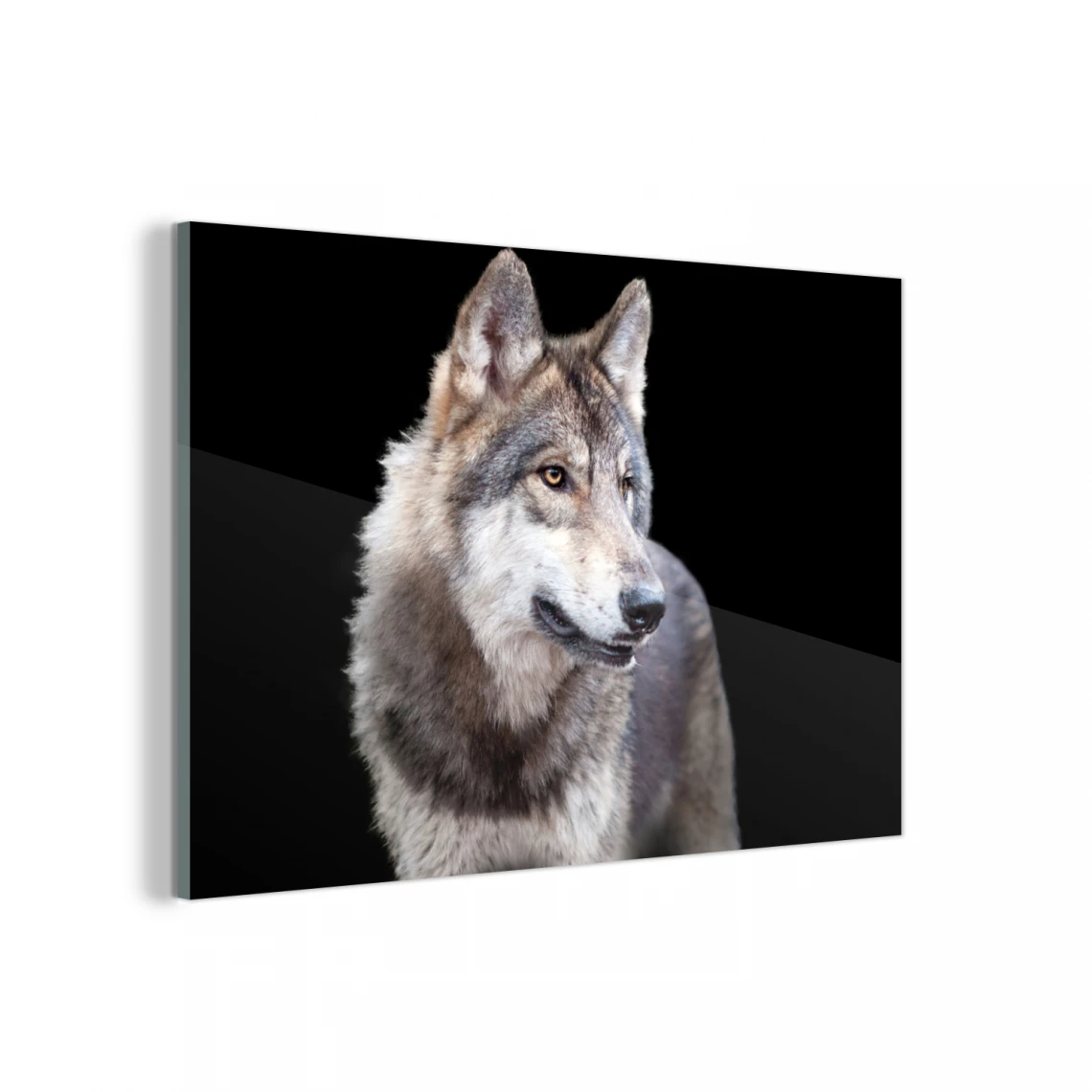 Points forts MuchoWow Impression sur verre Loup gris sauvage Tableau decoration murale salon 120×80 cm Tableau sur verre acrylique