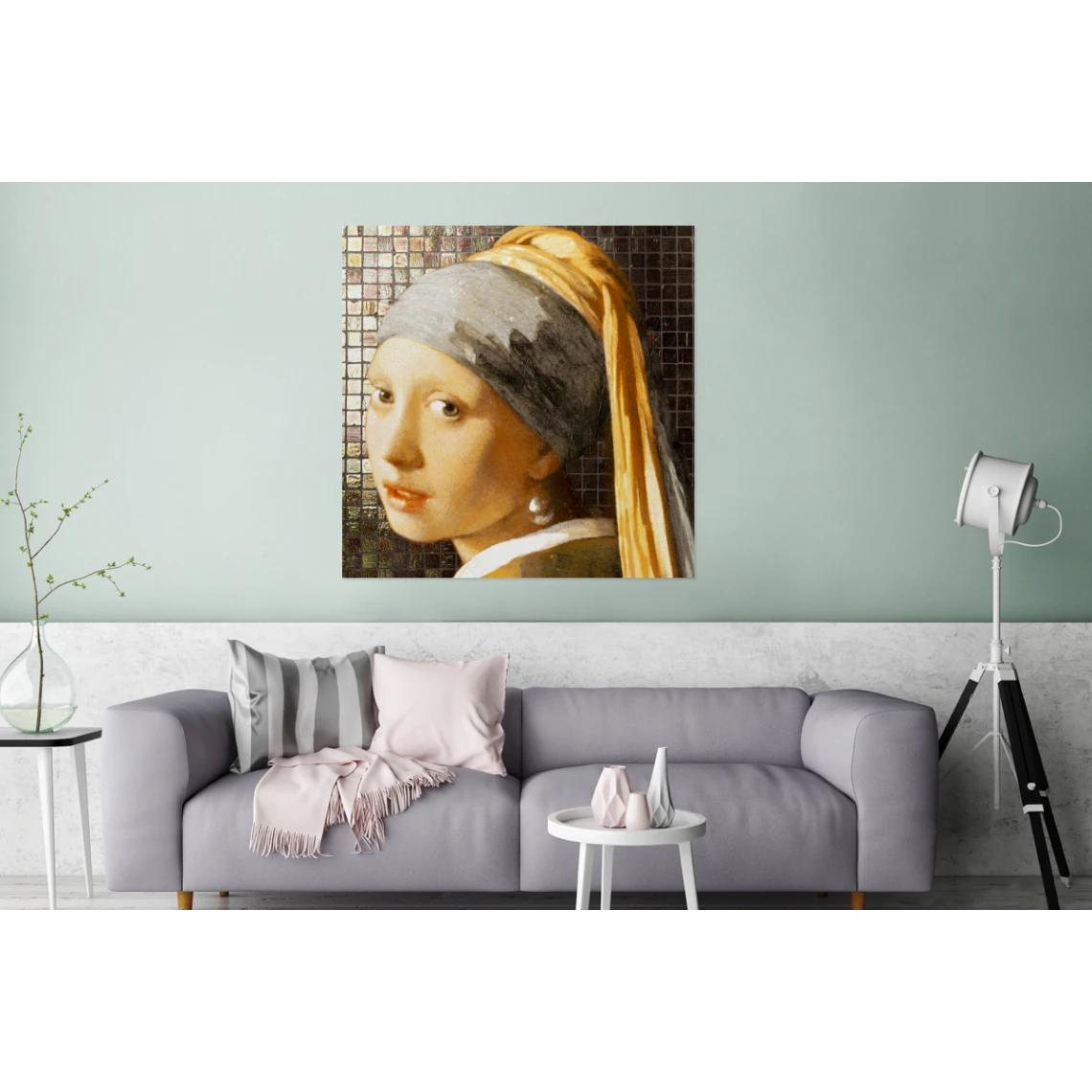 Points forts MuchoWow Impression sur verre Maîtres anciens – Fille avec une boucle d’oreille en perle – Carreaux Tableau decoration murale salon 90×90 cm Tableau sur verre acrylique