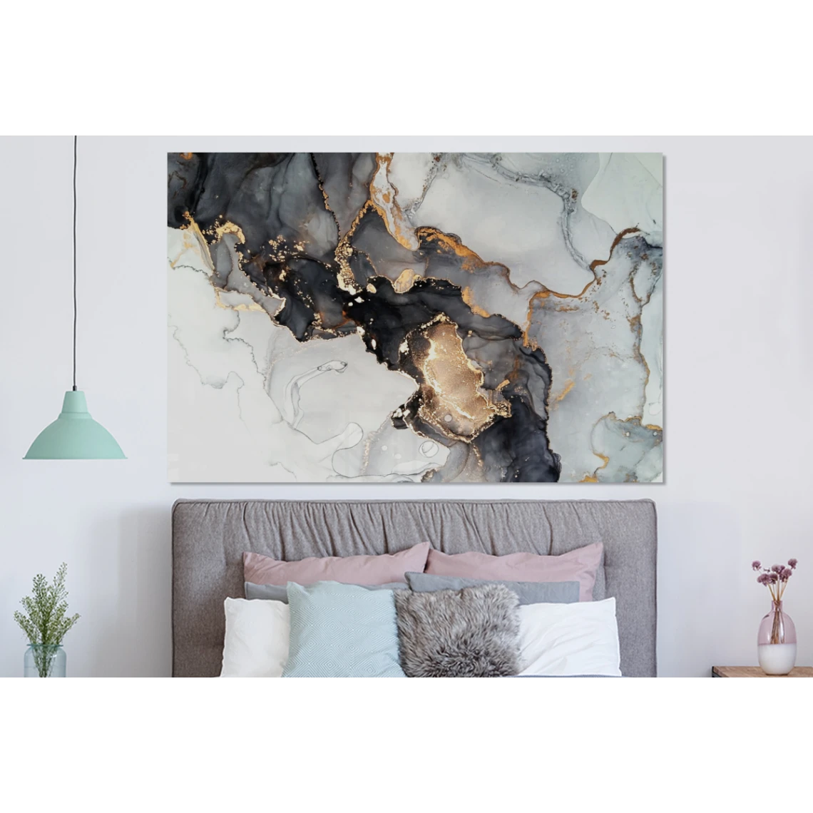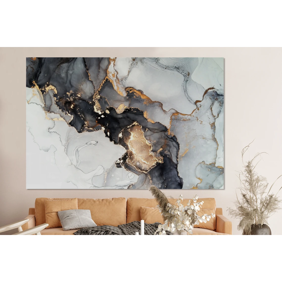 Points forts MuchoWow Impression sur verre Marbre – Noir – Blanc – Or – Luxe Tableau decoration murale salon 150×100 cm Tableau sur verre acrylique