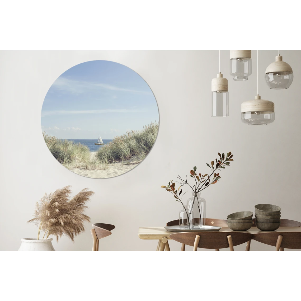 Points forts MuchoWow Tableau imprimé rond Bateau – Mer – Plage Impression sur aluminium en rond 140×140 cm Tableau decoration murale salon