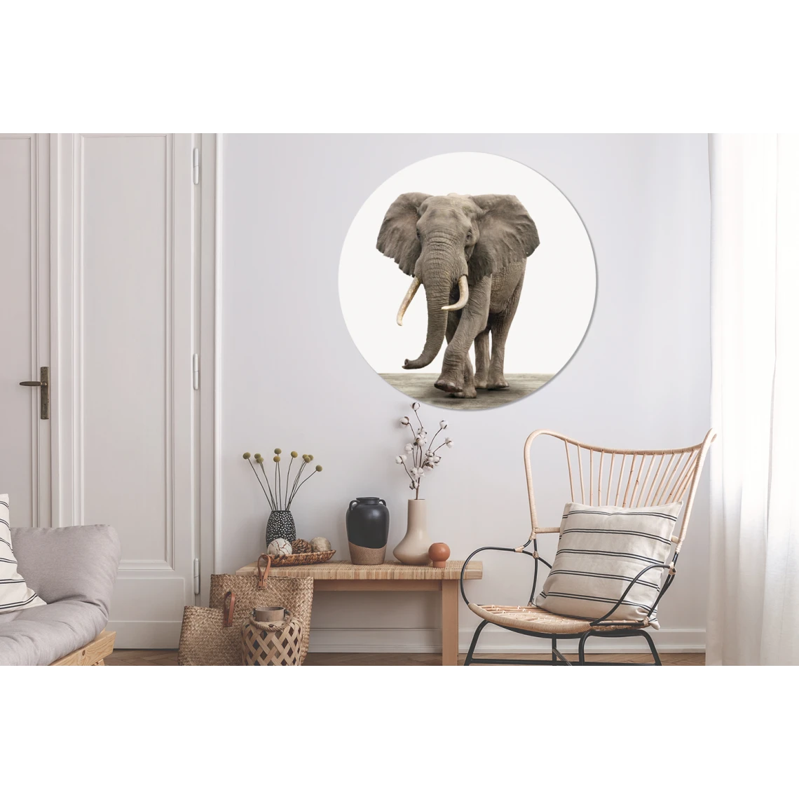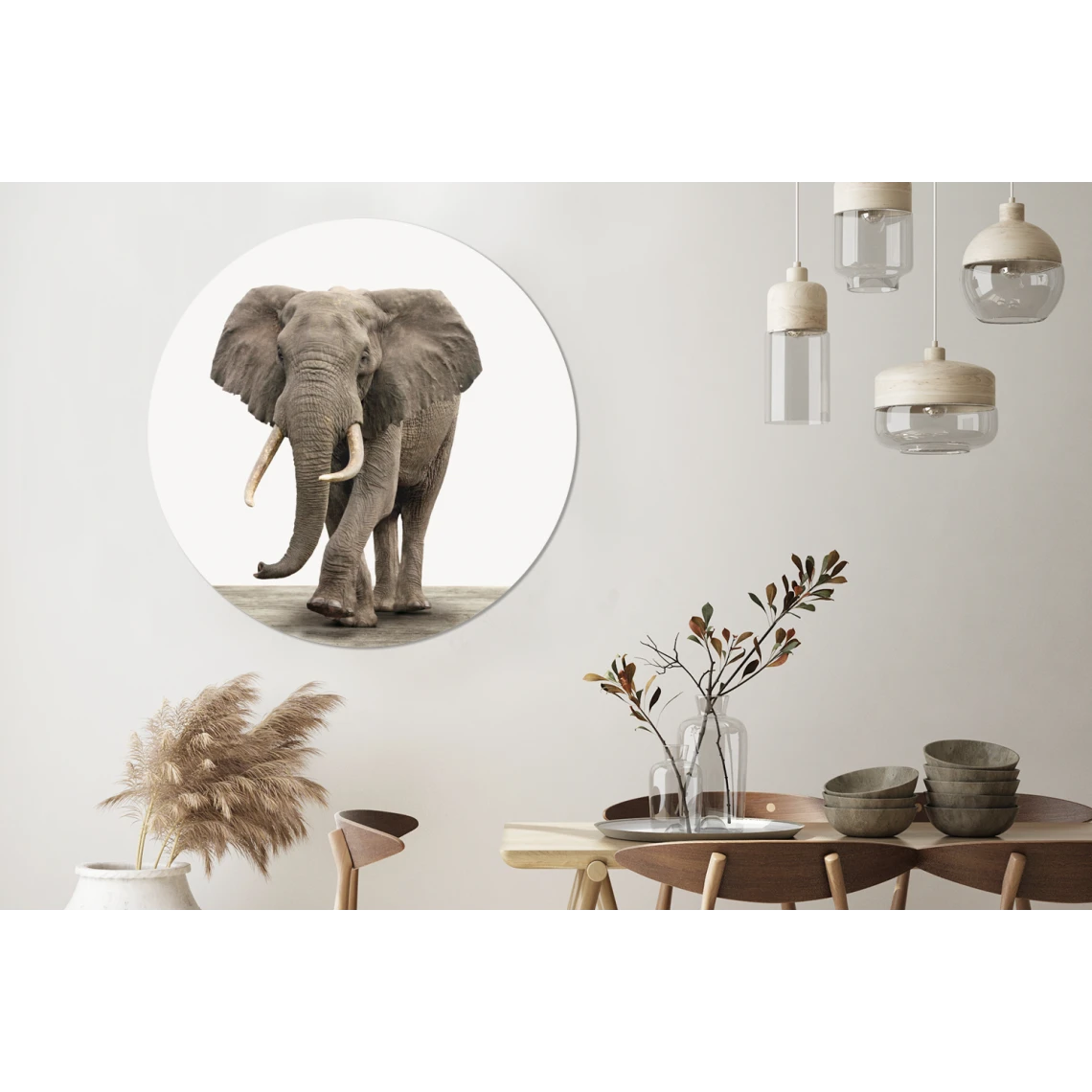 Points forts MuchoWow Tableau imprimé rond Éléphant – Décoration murale – Salon – Chambre à coucher Impression sur aluminium en rond 140×140 cm Tableau decoration murale salon