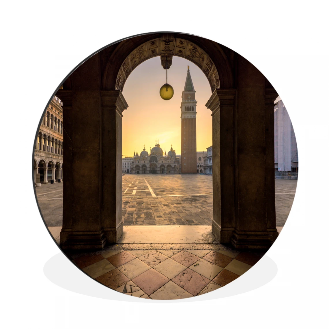 Points forts MuchoWow Tableau imprimé rond Italie – Place – San Marco Impression sur aluminium en rond 30×30 cm Tableau decoration murale salon