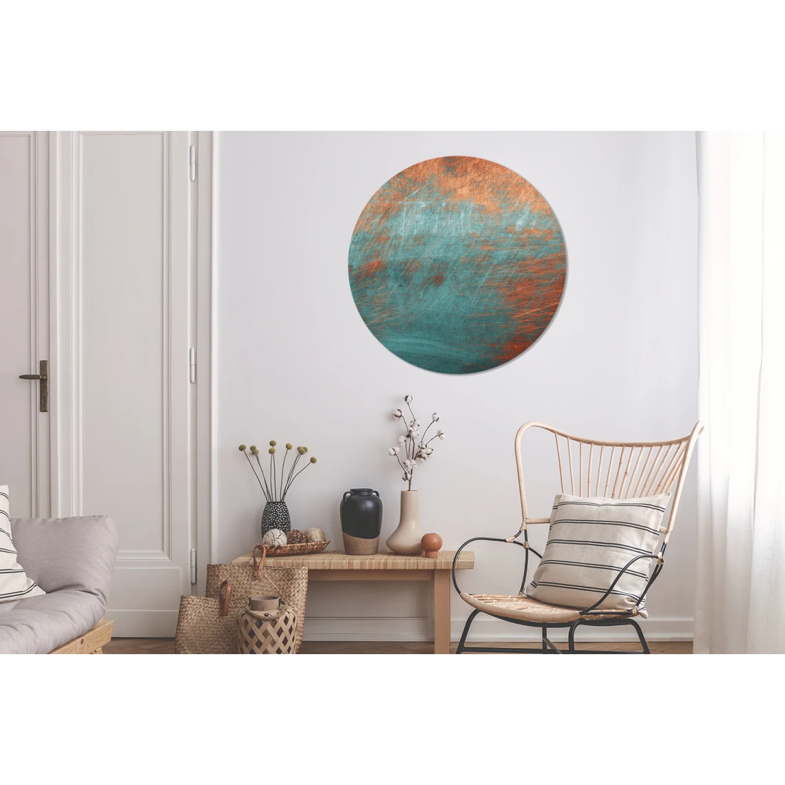 Points forts MuchoWow Tableau imprimé rond Métal – Rayures – Rouille Impression sur aluminium en rond 90×90 cm Tableau decoration murale salon