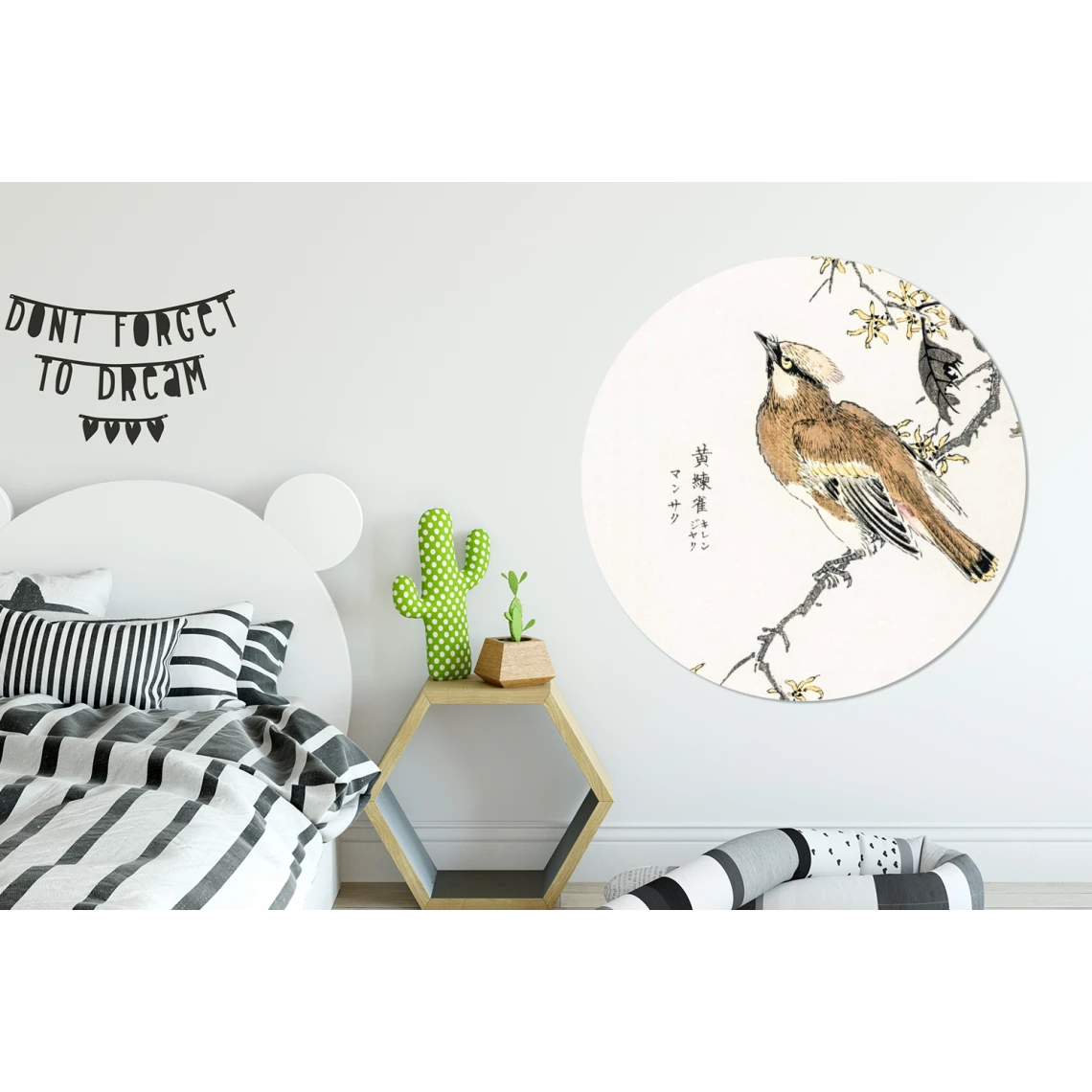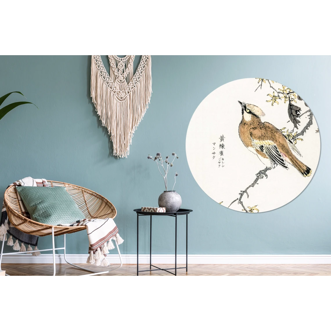 Points forts MuchoWow Tableau imprimé rond Oiseau – Branche – Personnages – Japonais Impression sur aluminium en rond 120×120 cm Tableau decoration murale salon
