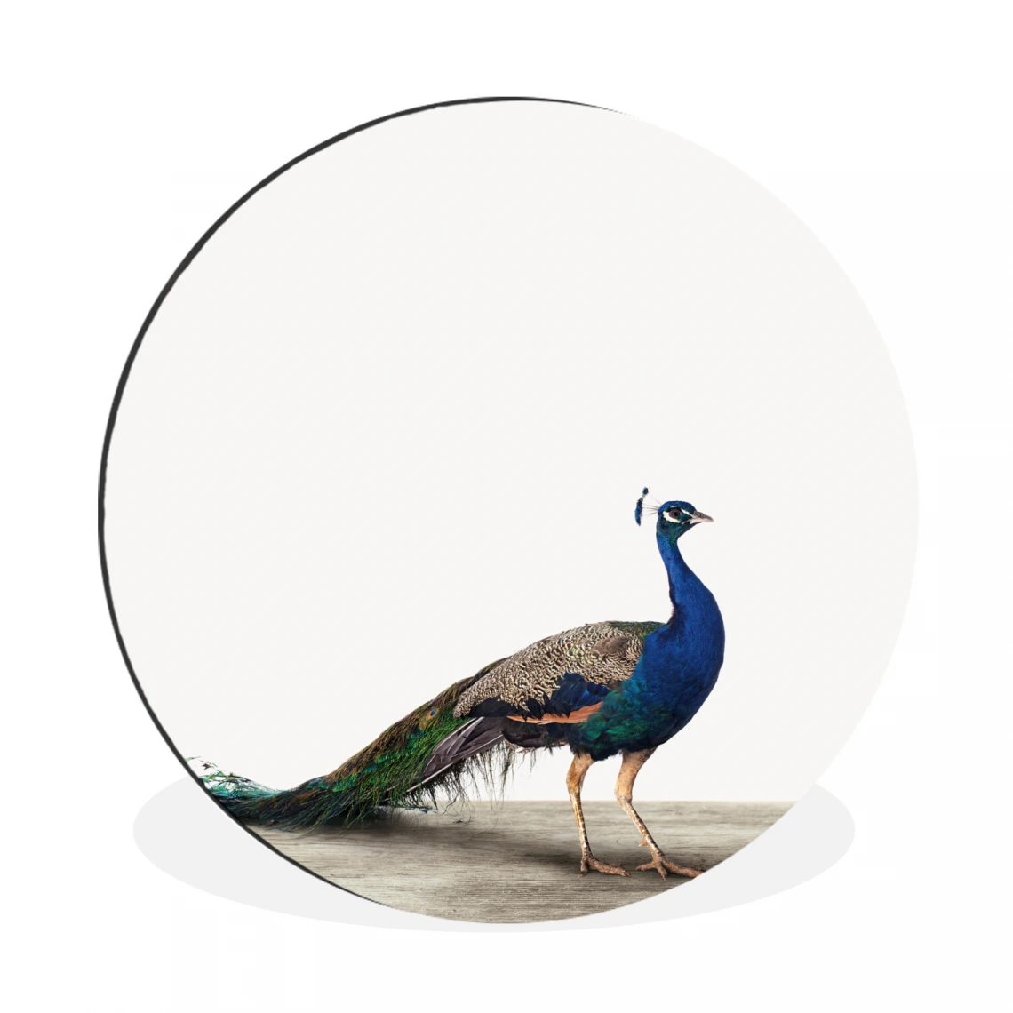 Points forts MuchoWow Tableau imprimé rond Paon – Plume – Oiseau – Salon – Chambre à coucher Impression sur aluminium en rond 60×60 cm Tableau decoration murale salon
