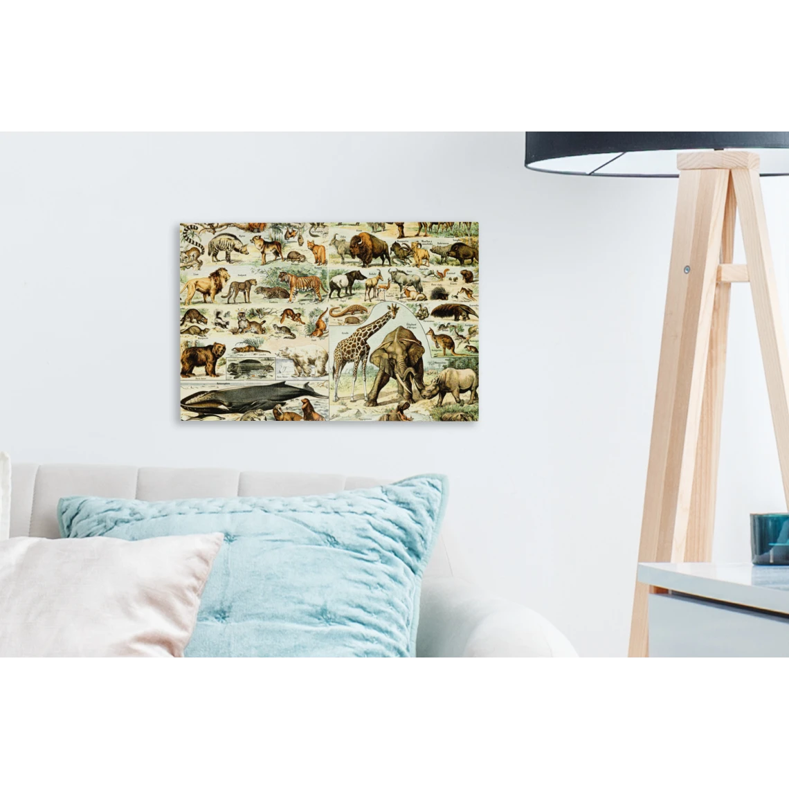 Points forts MuchoWow Tableau sur toile Animaux – Girafe – Lion Decoration murale 30×20 cm