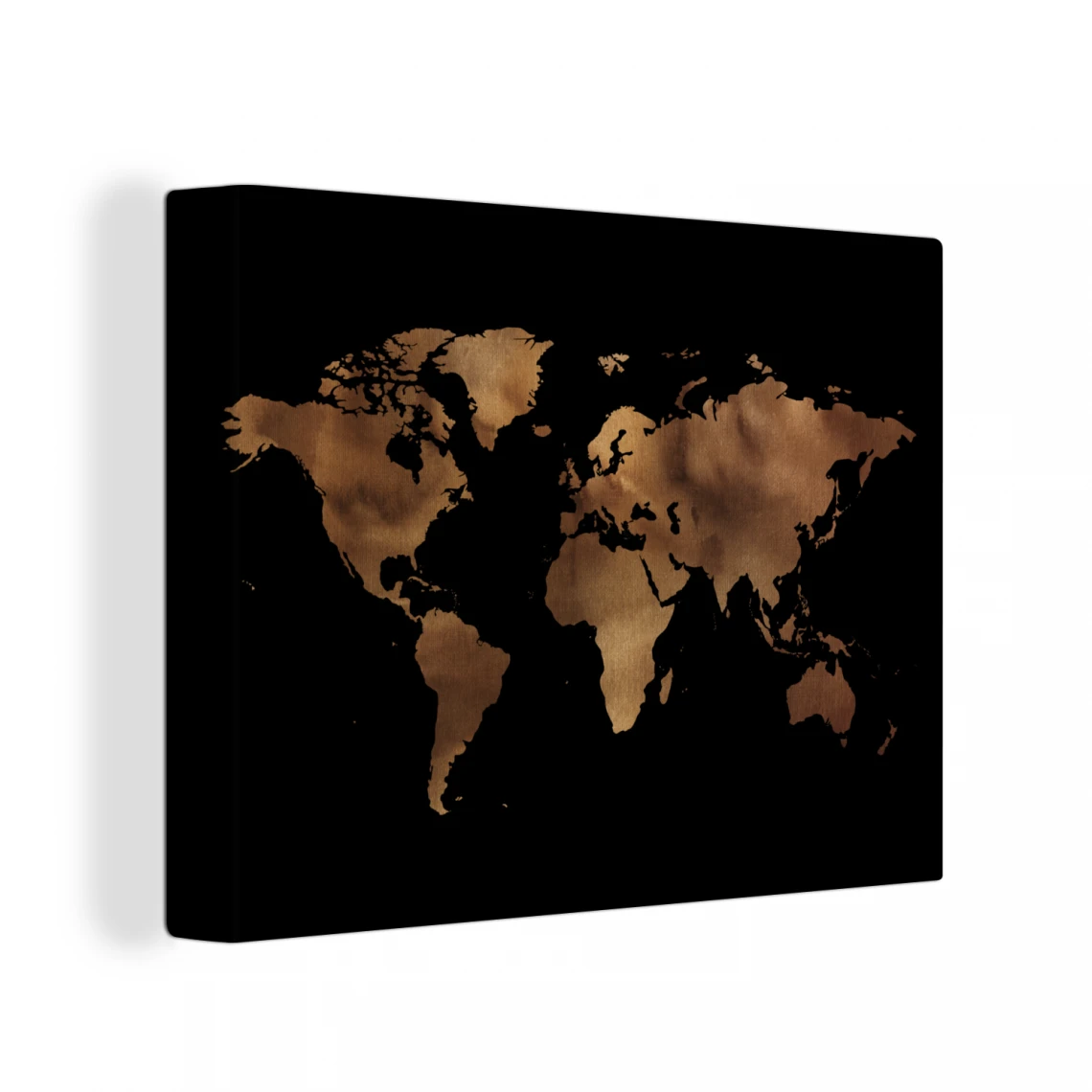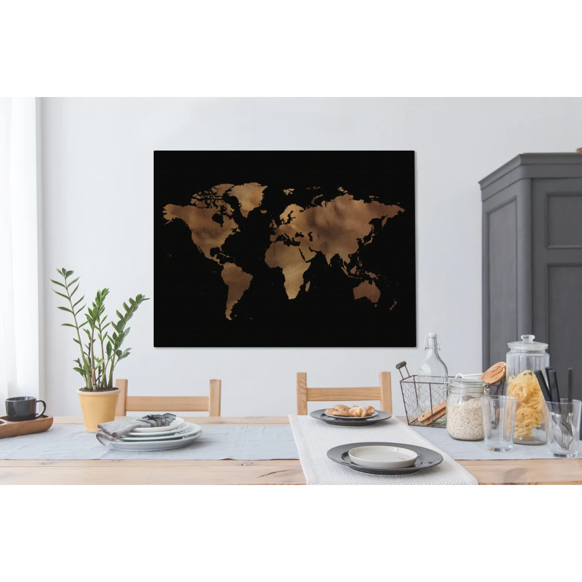 Points forts MuchoWow Tableau sur toile Carte du monde – Marron – Noir Decoration murale 120×90 cm
