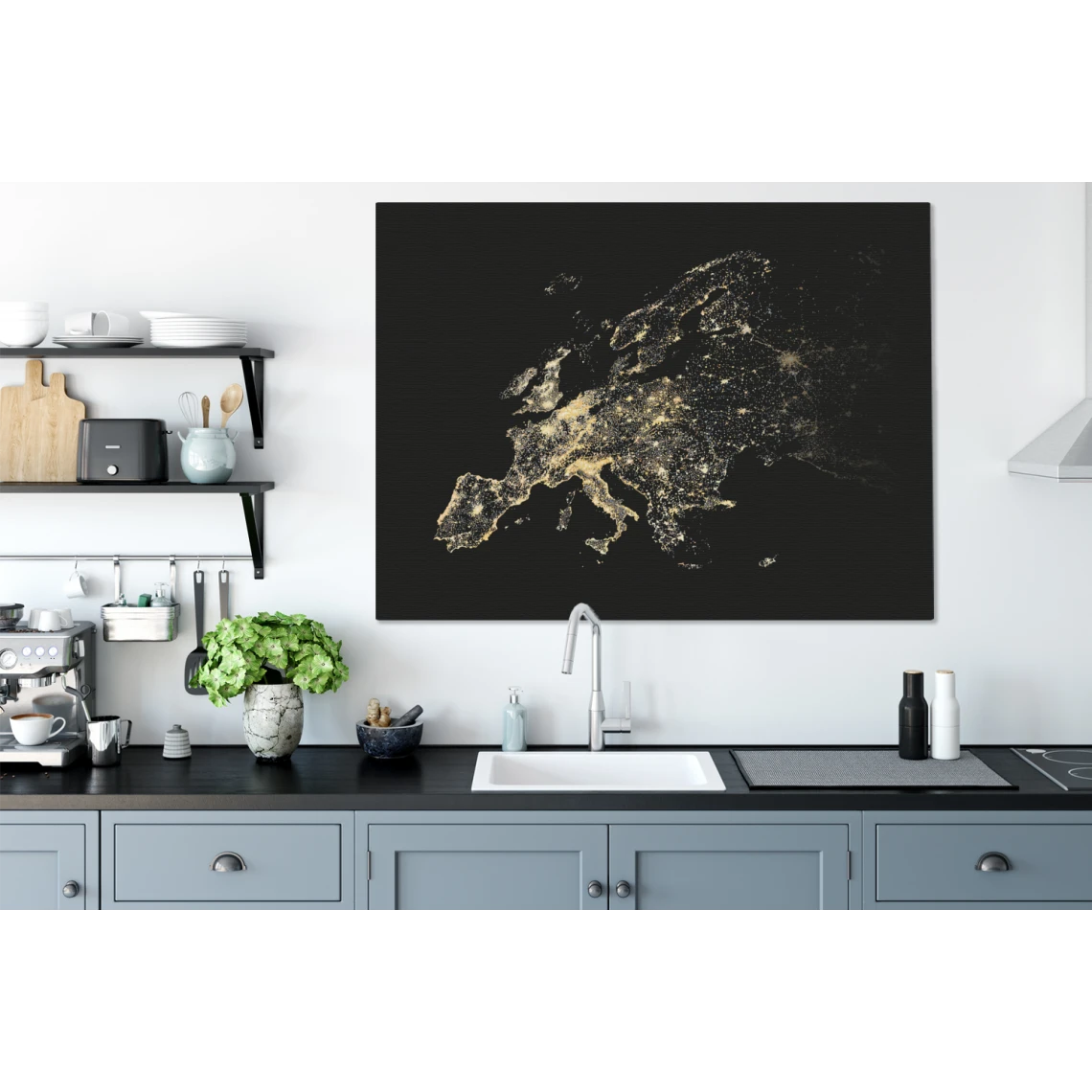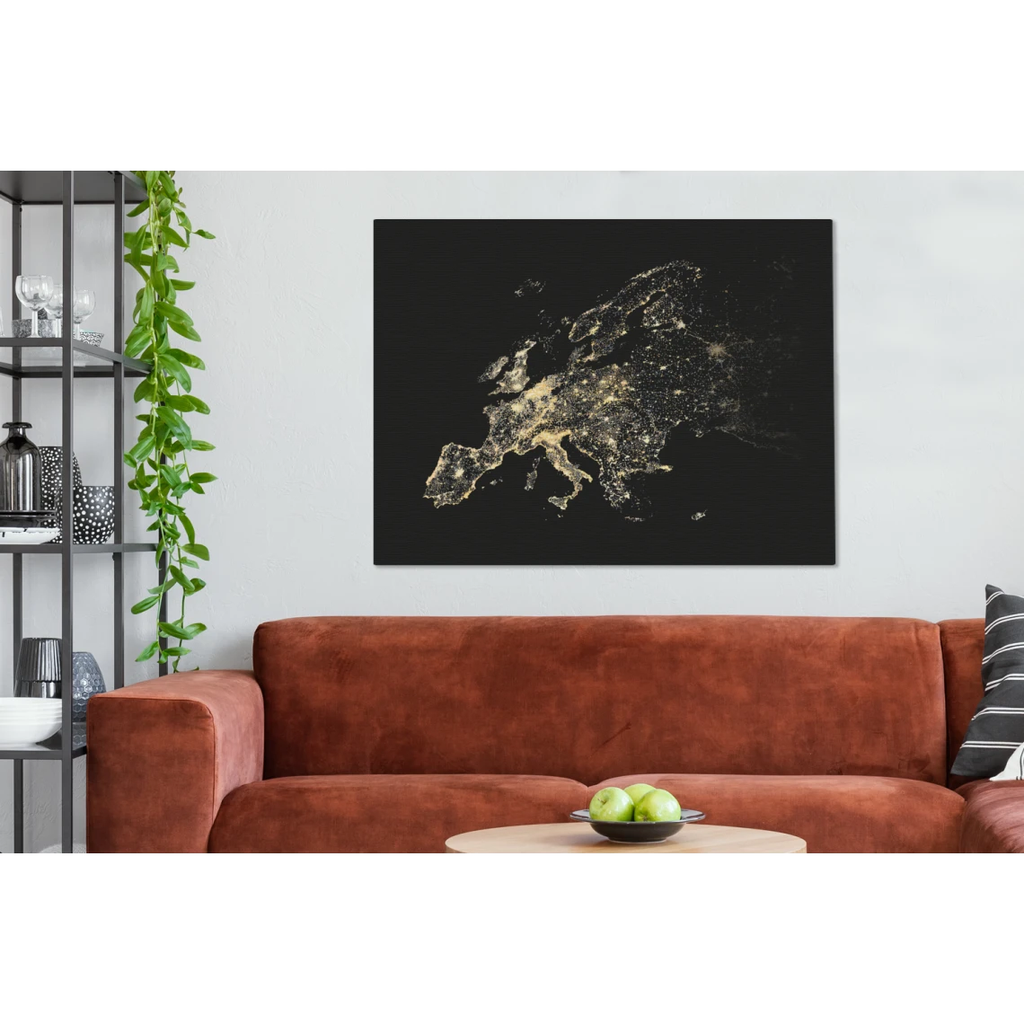 Points forts MuchoWow Tableau sur toile Carte – Europe – Noir – Or Decoration murale 120×90 cm