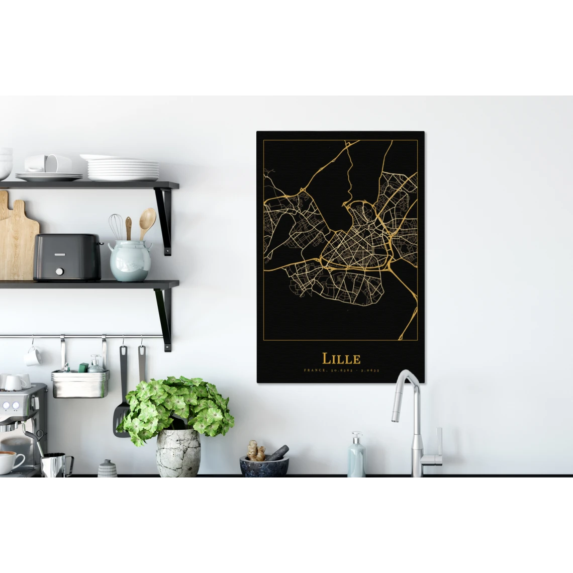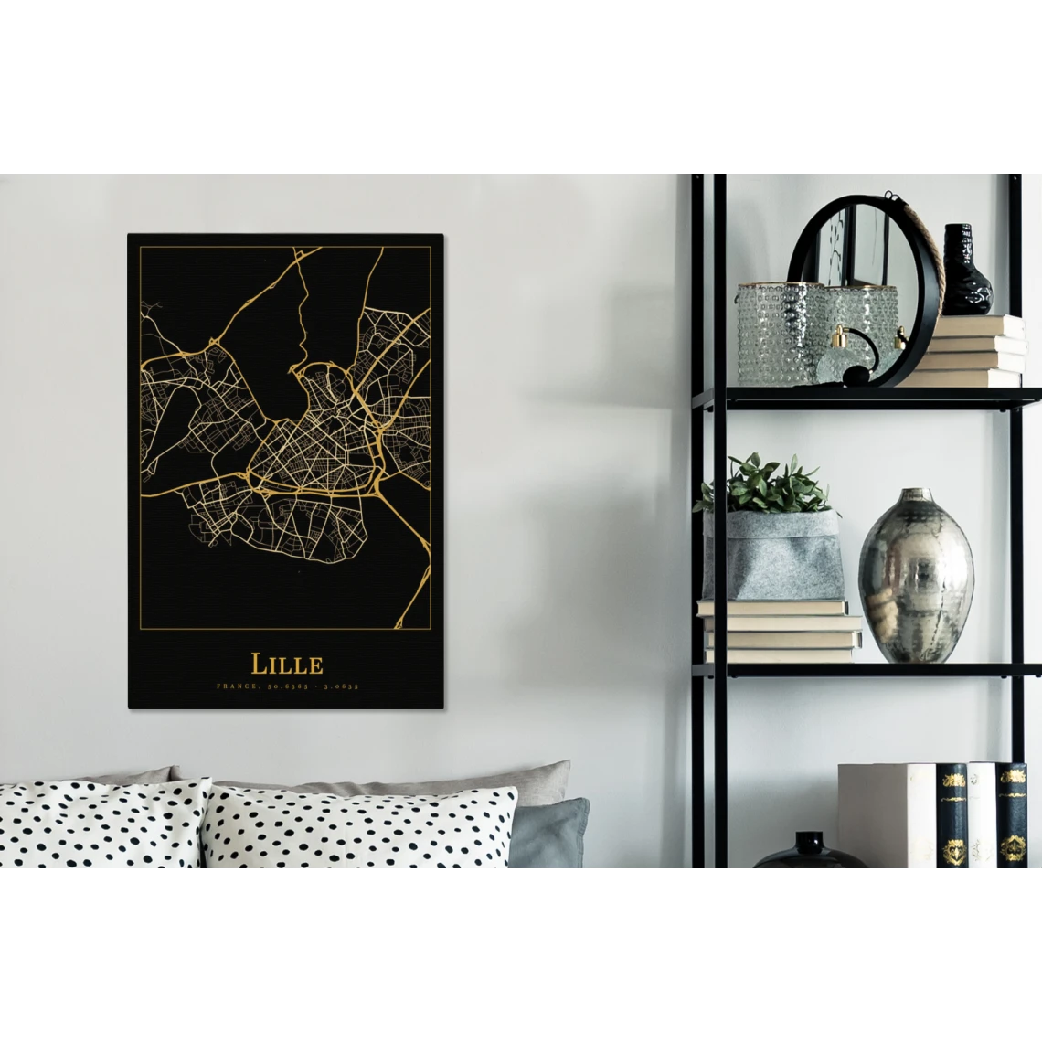 Points forts MuchoWow Tableau sur toile Carte – Lille – France – Or – Noir Decoration murale 60×90 cm