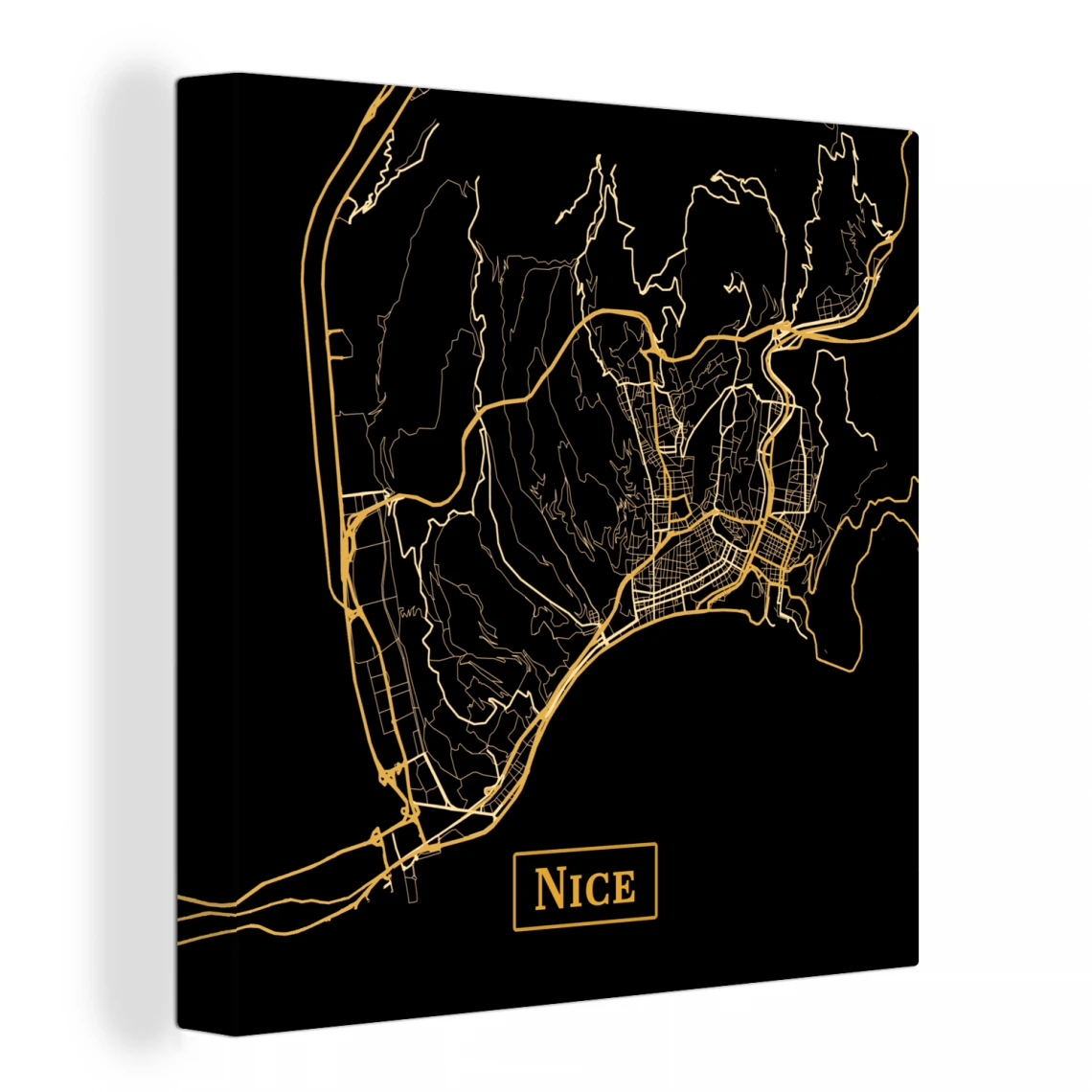 Points forts MuchoWow Tableau sur toile Carte – Nice – Noir – Or Decoration murale 90×90 cm