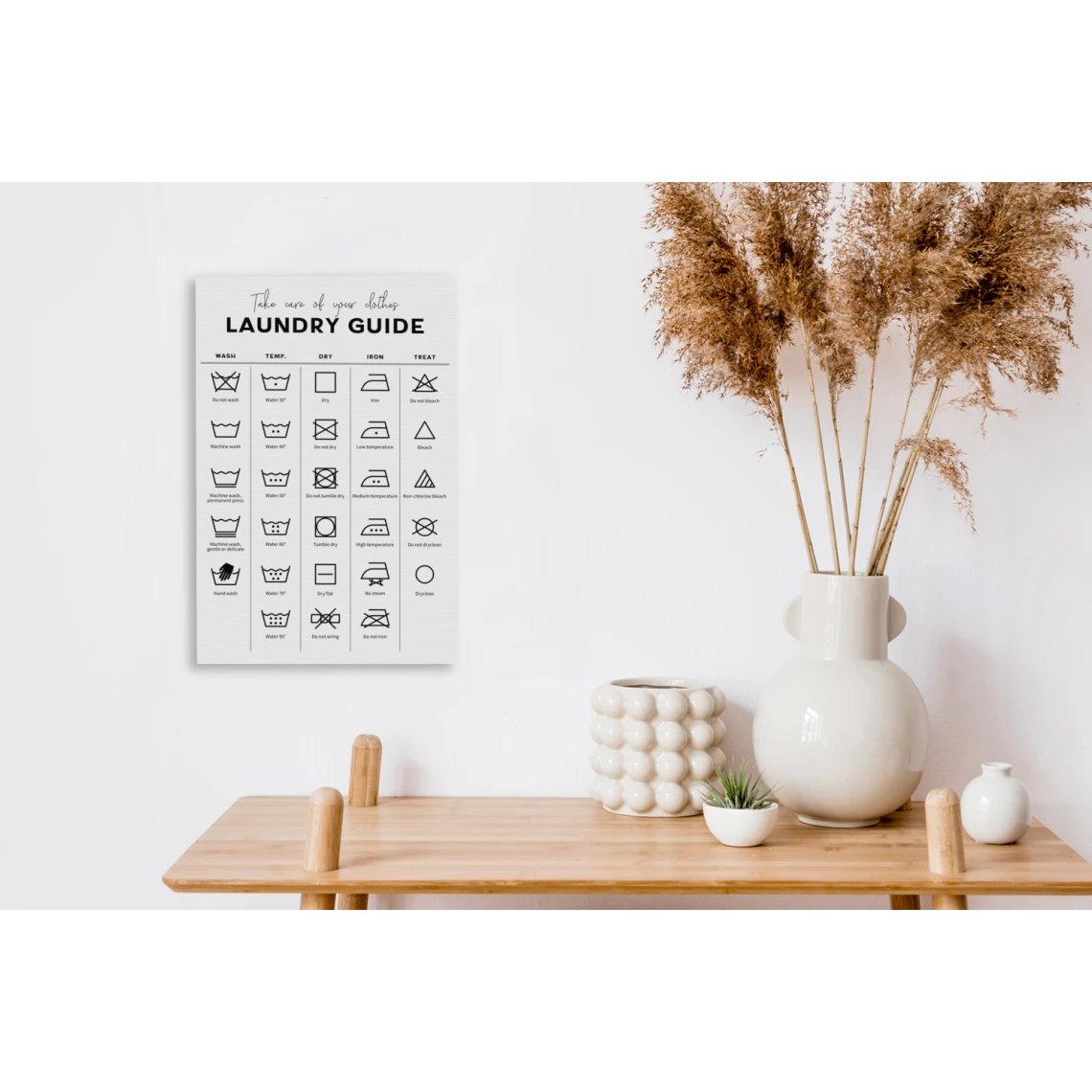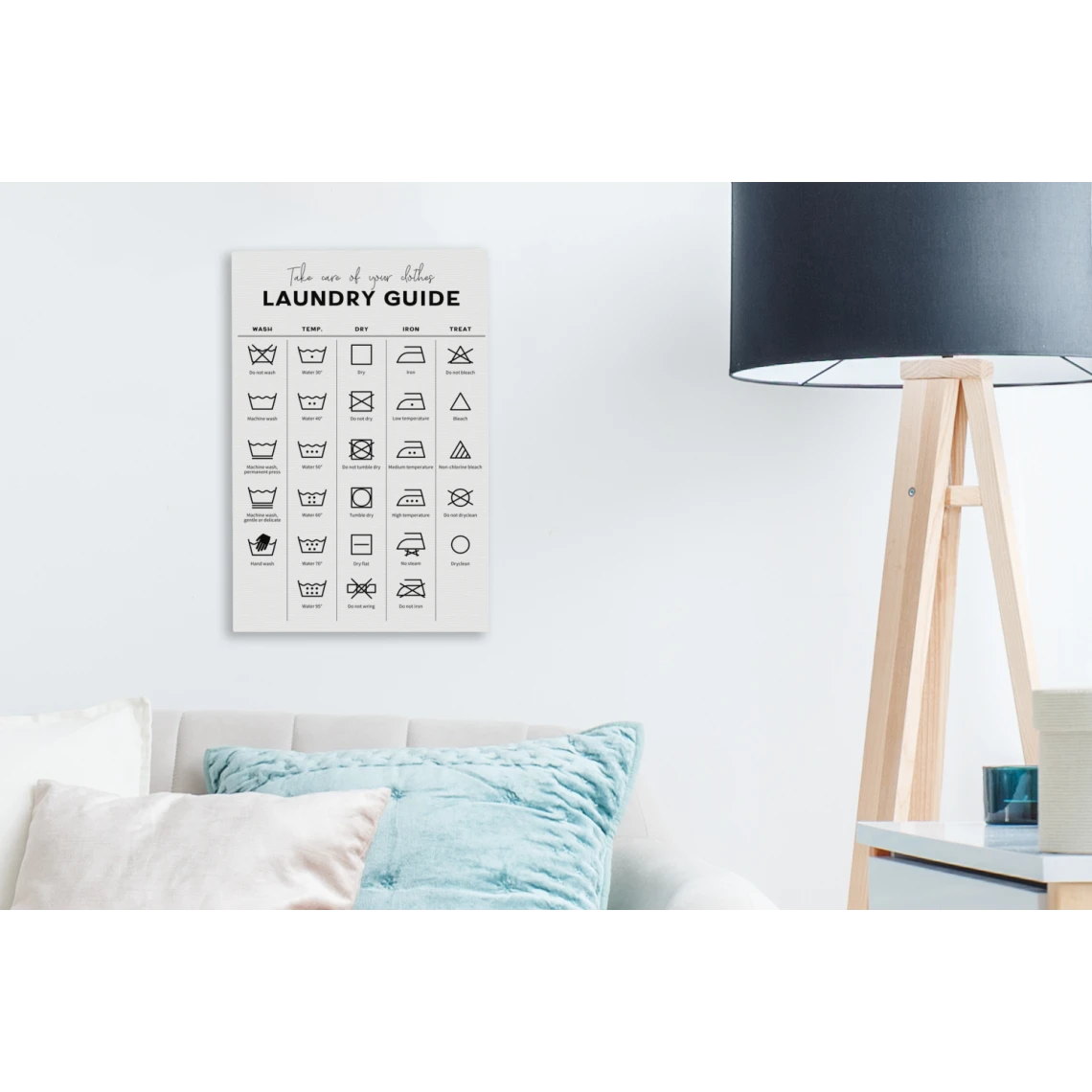 Points forts MuchoWow Tableau sur toile Instructions de lavage – Lave-linge – Symboles Decoration murale 20×30 cm