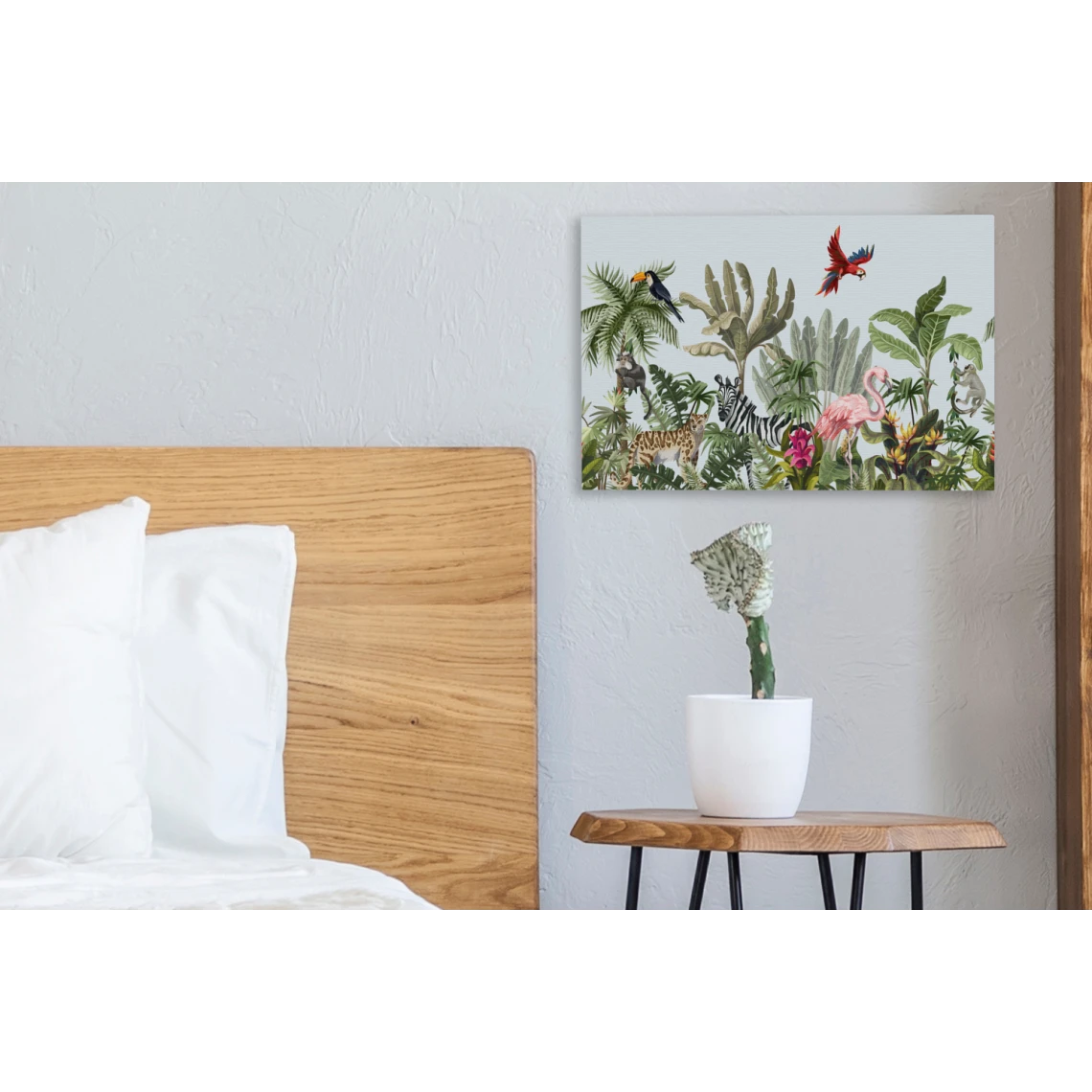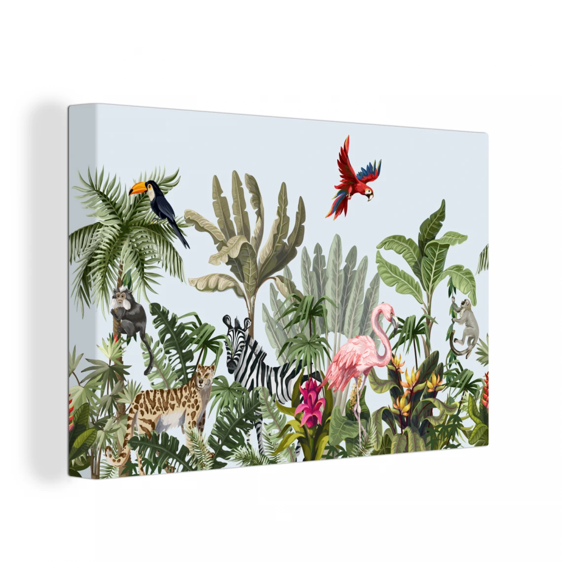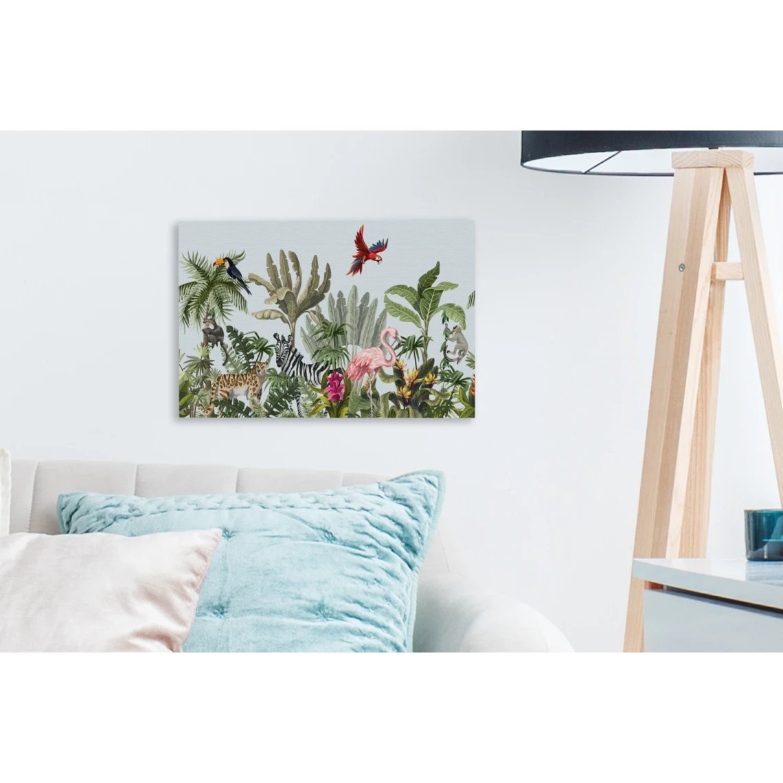 Points forts MuchoWow Tableau sur toile Jungle – Flamant – Singe Decoration murale 30×20 cm