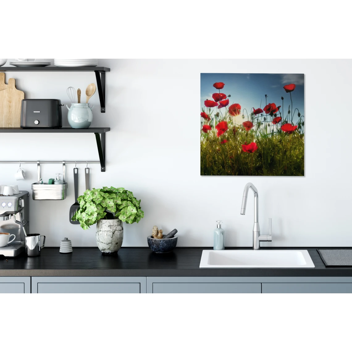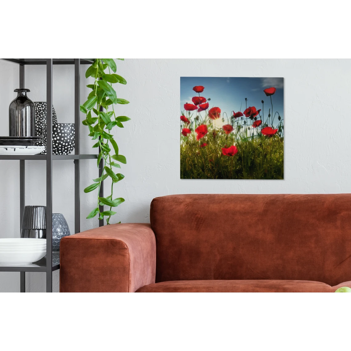 Points forts MuchoWow Tableau sur toile Longs coquelicots rouges en Toscane par une journée ensoleillée Decoration murale 50×50 cm