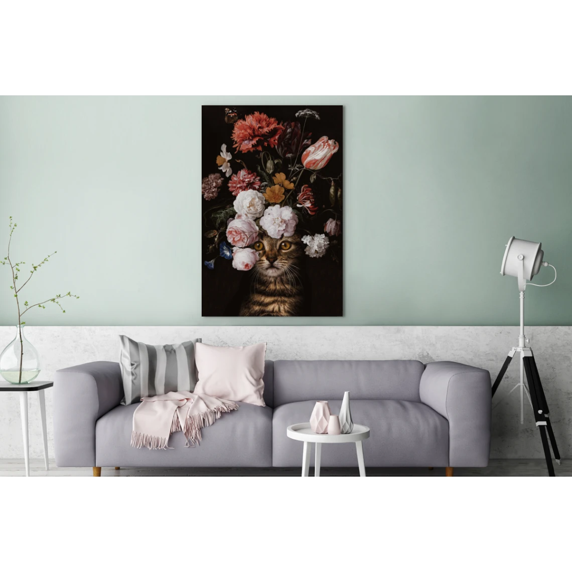 L’œuvre “Nature morte aux fleurs” a été peinte par le vieux maître Jan Davidsz de Heem et a été égayée par l’ajout d’un chat.