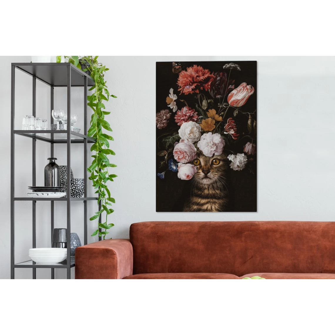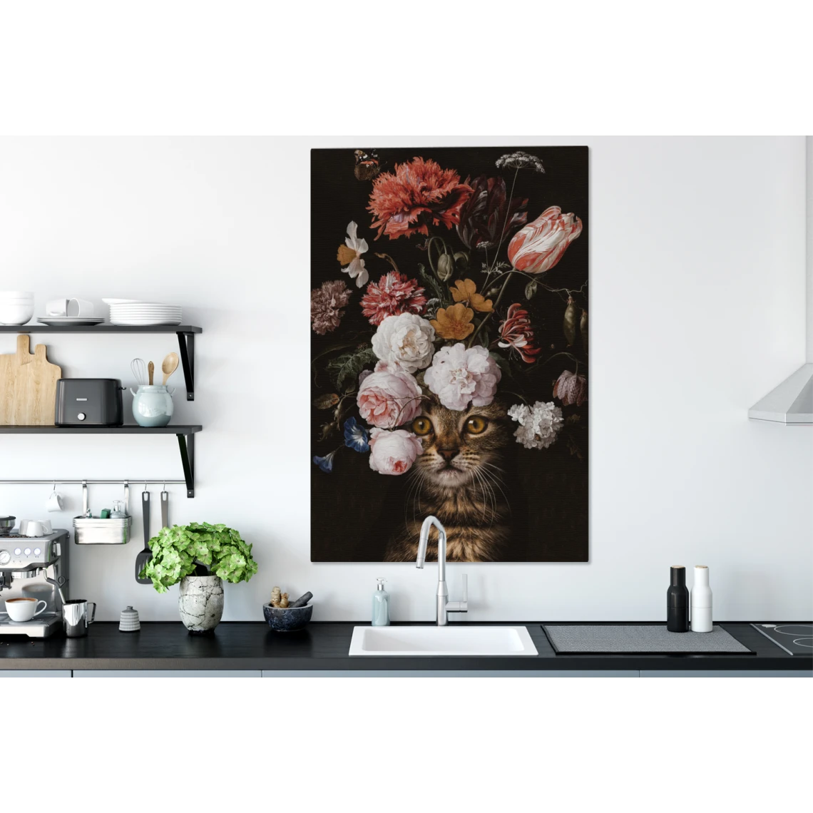 Points forts MuchoWow Tableau sur toile Nature morte avec des fleurs – Jan Davidsz de Heem – Chat Decoration murale 90×140 cm