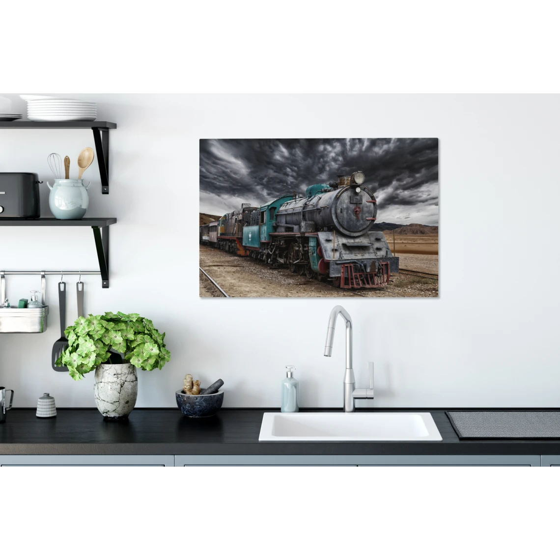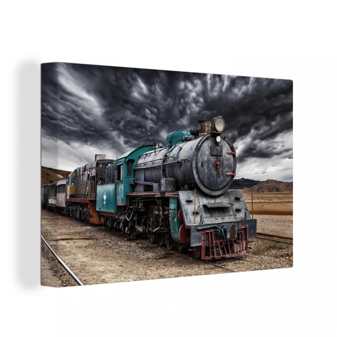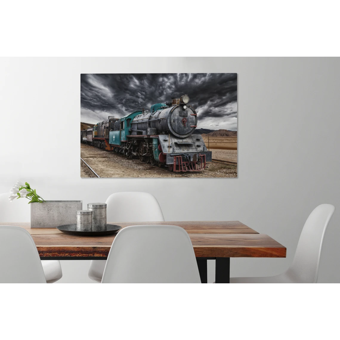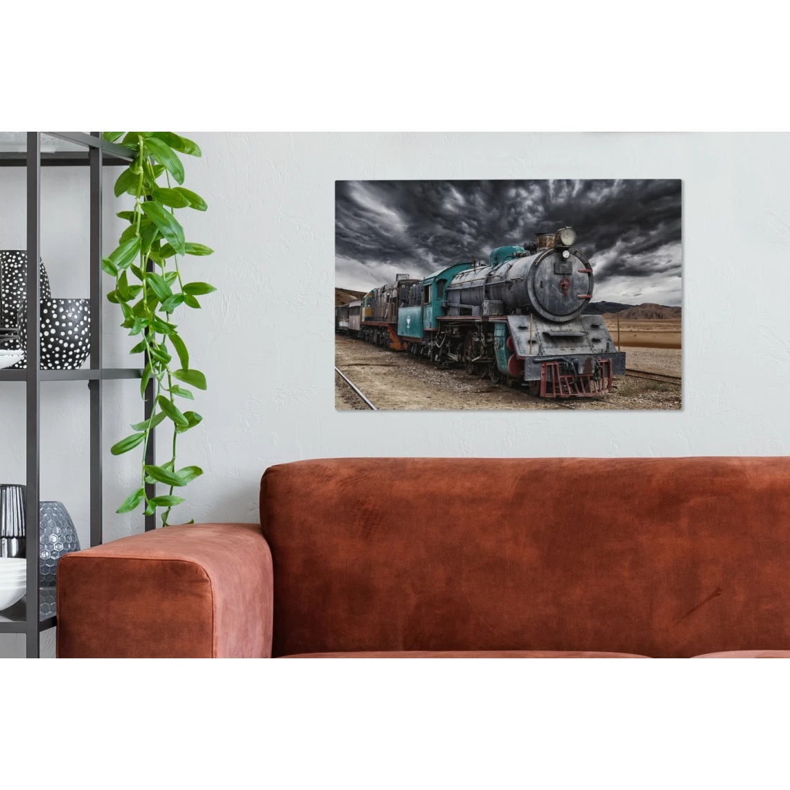 Points forts MuchoWow Tableau sur toile Nuages noirs au-dessus de la locomotive à vapeur Decoration murale 90×60 cm