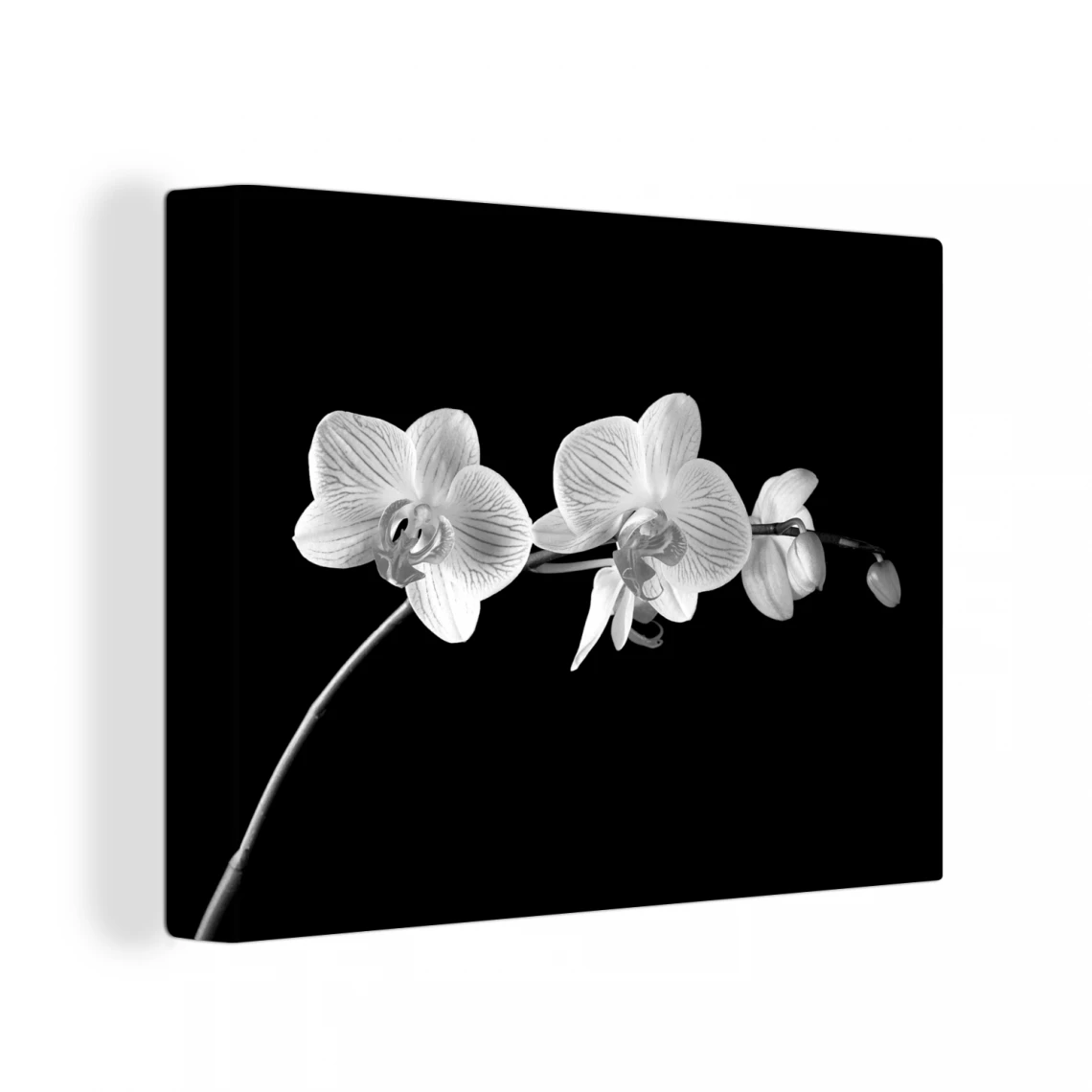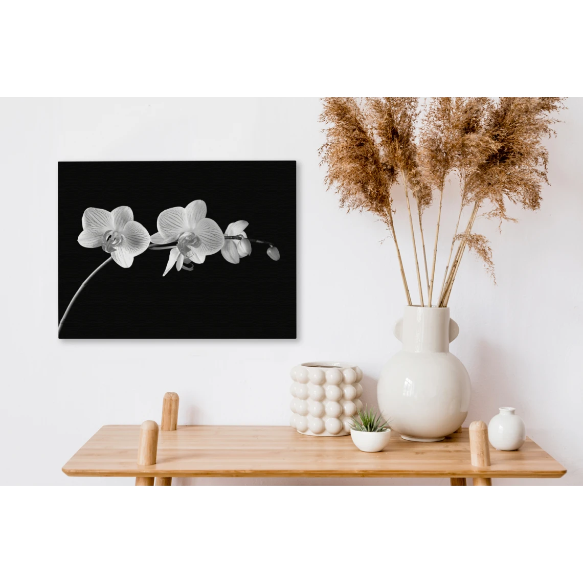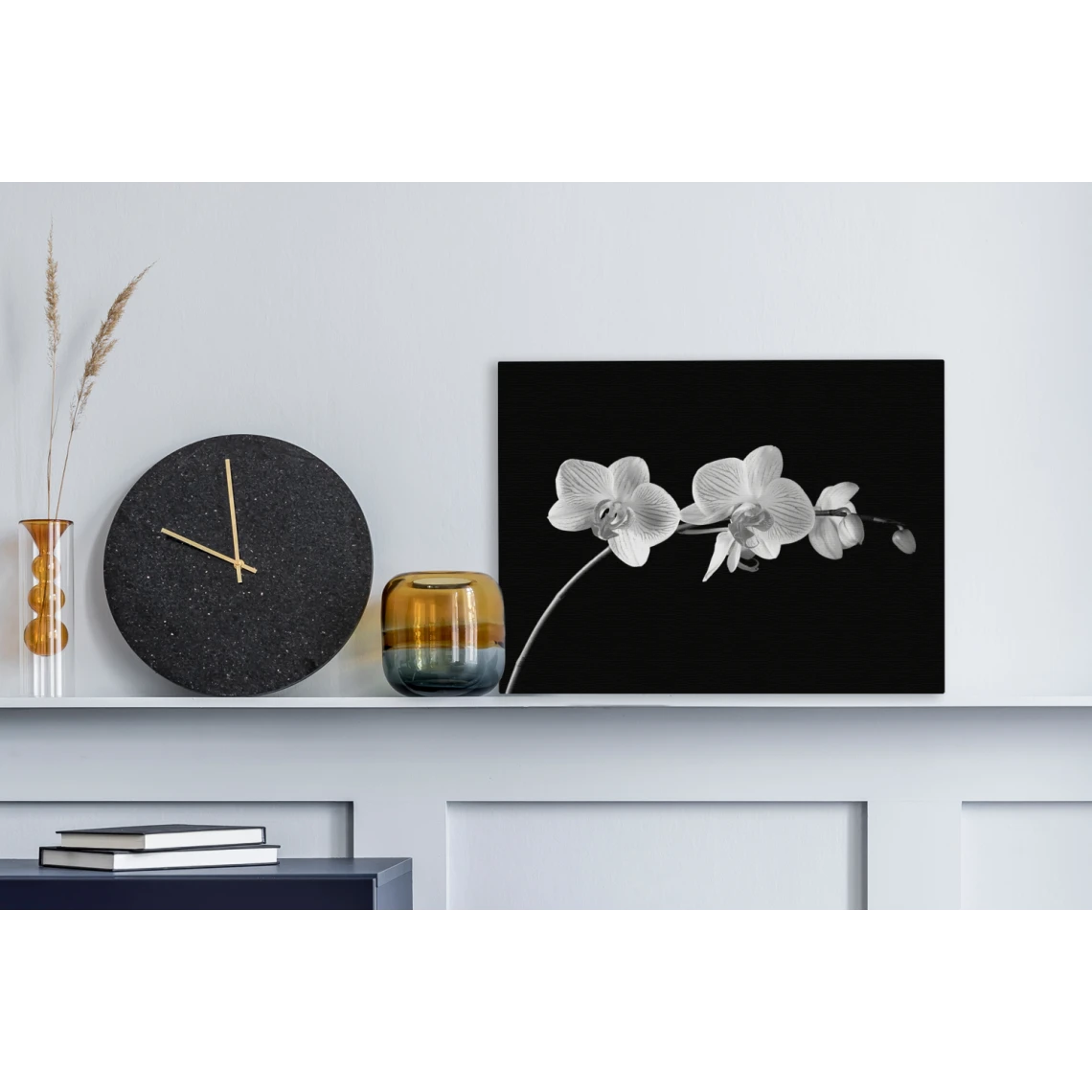 Points forts MuchoWow Tableau sur toile Orchidée sur fond noir – noir et blanc Decoration murale 40×30 cm