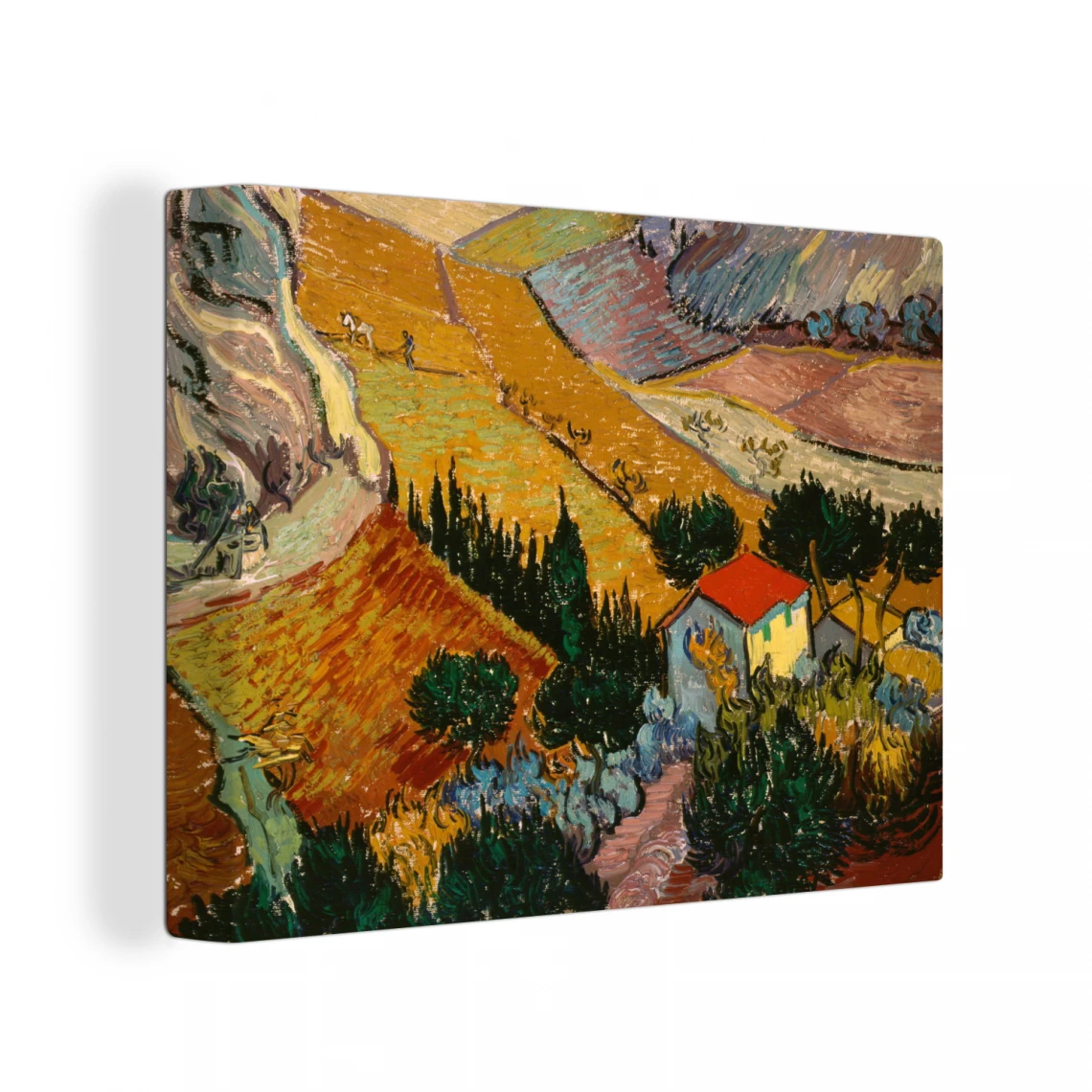 Points forts MuchoWow Tableau sur toile Paysage avec une maison et un laboureur – Vincent van Gogh Decoration murale 120×90 cm