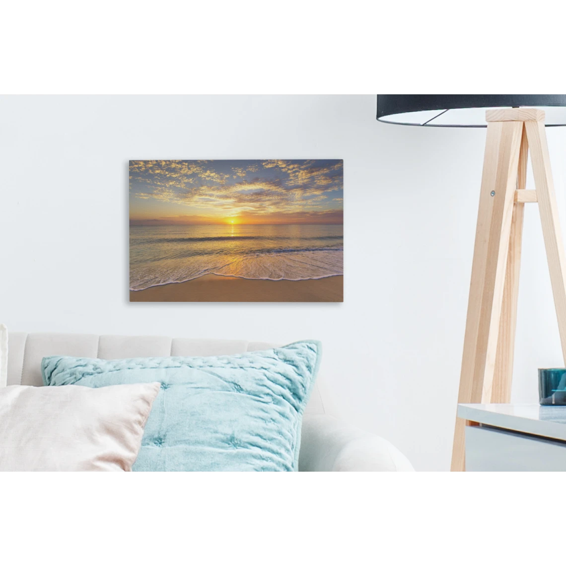 Points forts MuchoWow Tableau sur toile Plage – Coucher de soleil – Mer Decoration murale 30×20 cm